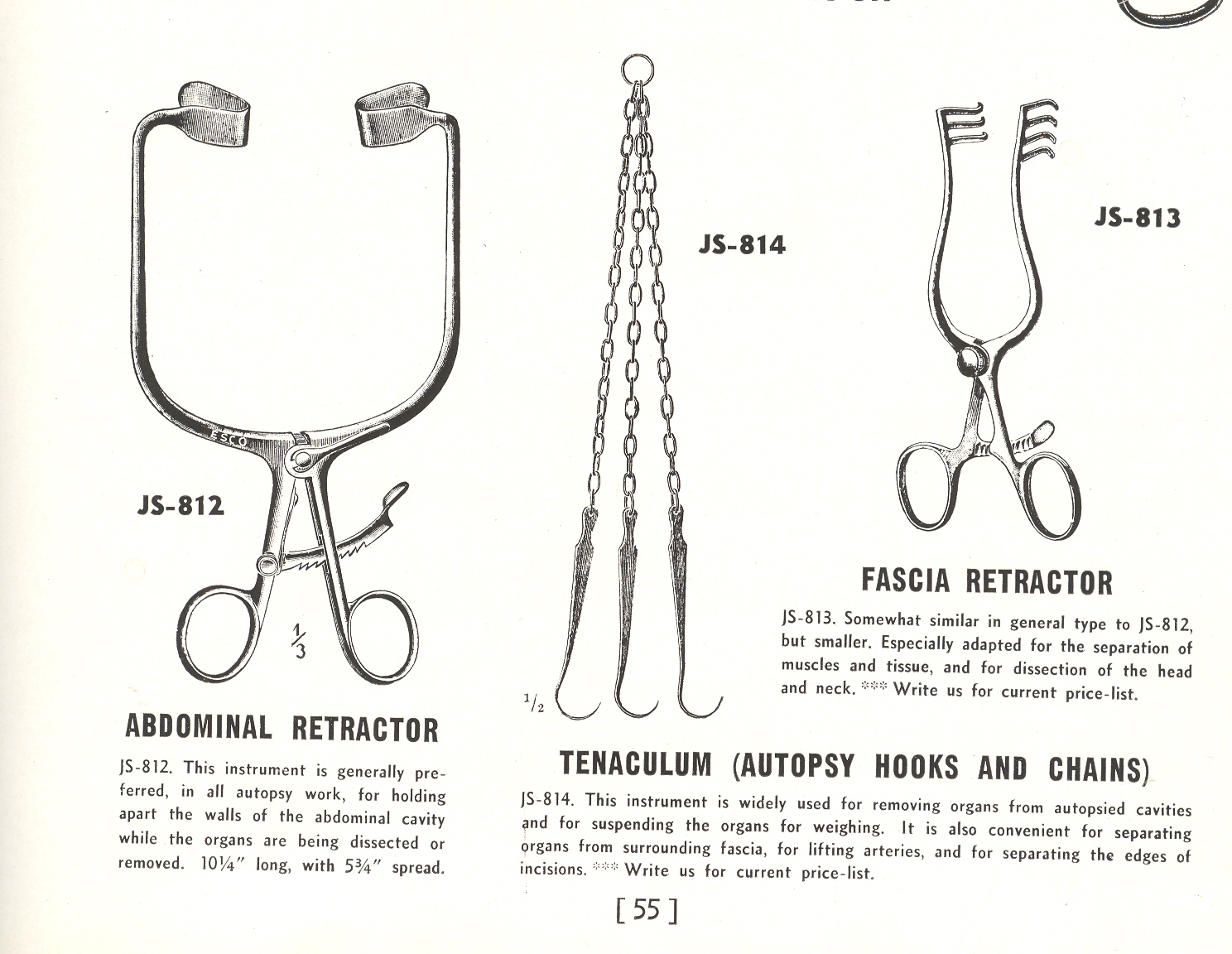 In addition to the chemicals is a long list of other necessaries (and no sundries), including all manner of scalpels, blades, rubber pants and bloomers, big black rubber gloves, “surgical” tables, spreaders, scoopers, closers, and then of course enormous suturing appliances with huge bobbins of thread.