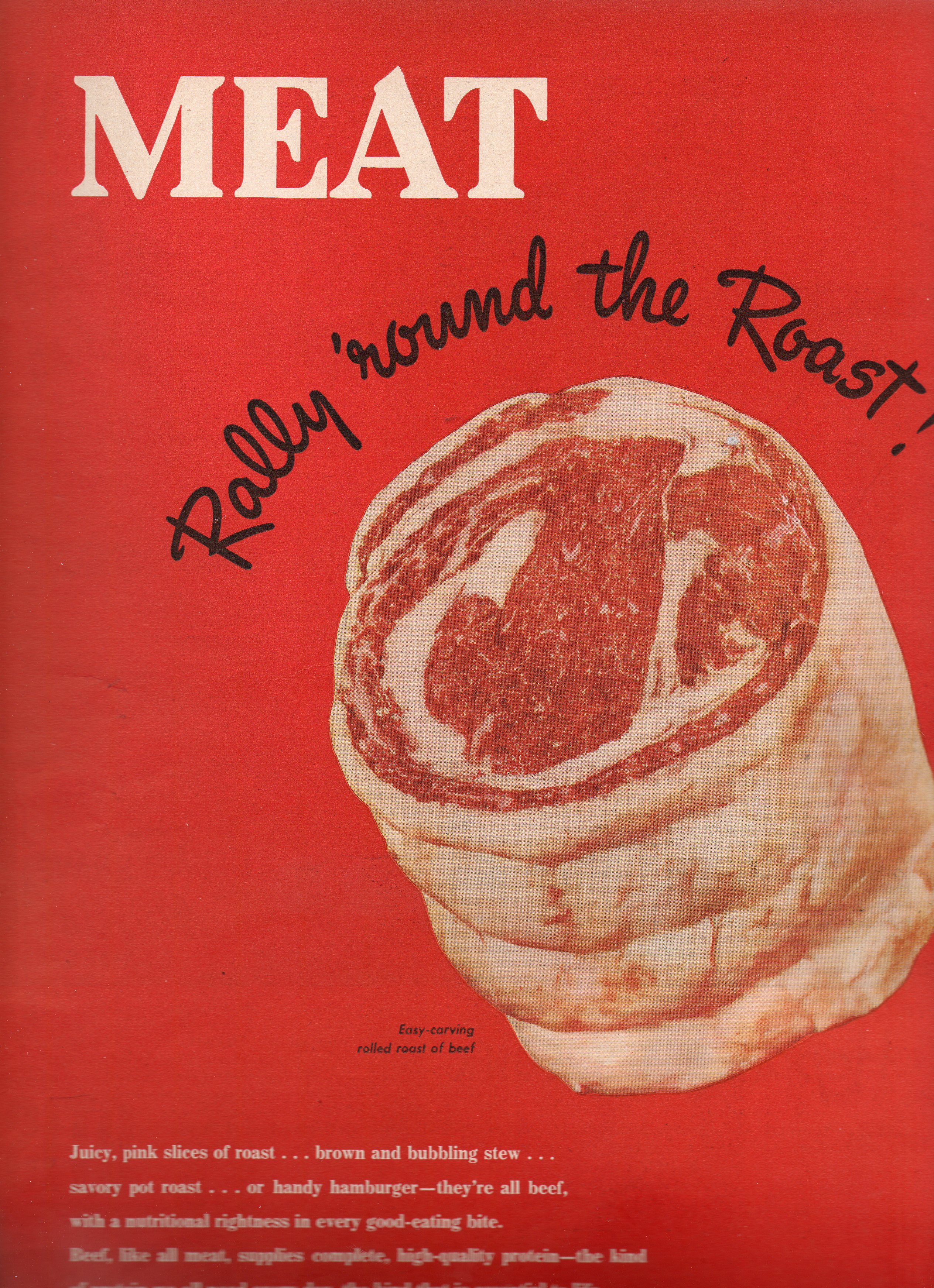 The other bit that runs far and wide through LIFE that reminds Americans that the meat that they are eating is meat , red meat, and the RED MEAT ads--these things are incredibly red, and big, and make quite the bloody splash considering that the ads were about 14 inches tall.