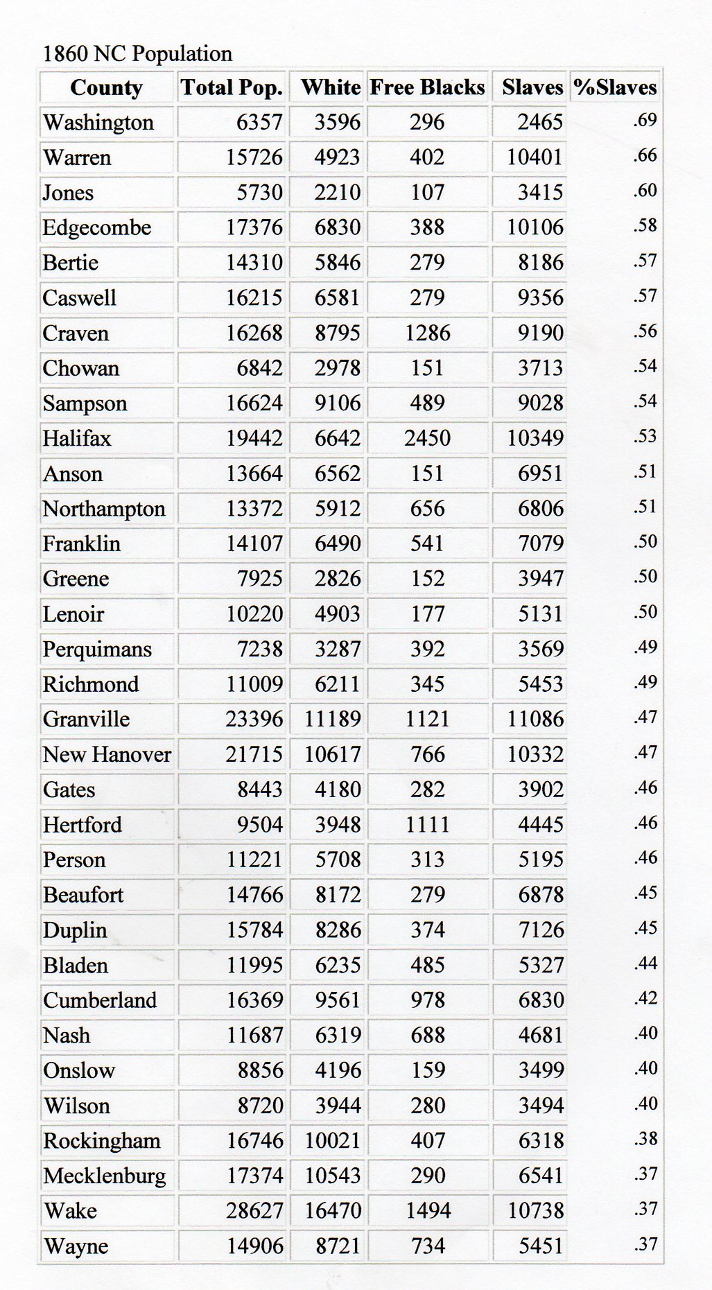 One more note: I had no idea more than 8% of the black population of NC before the war were free.