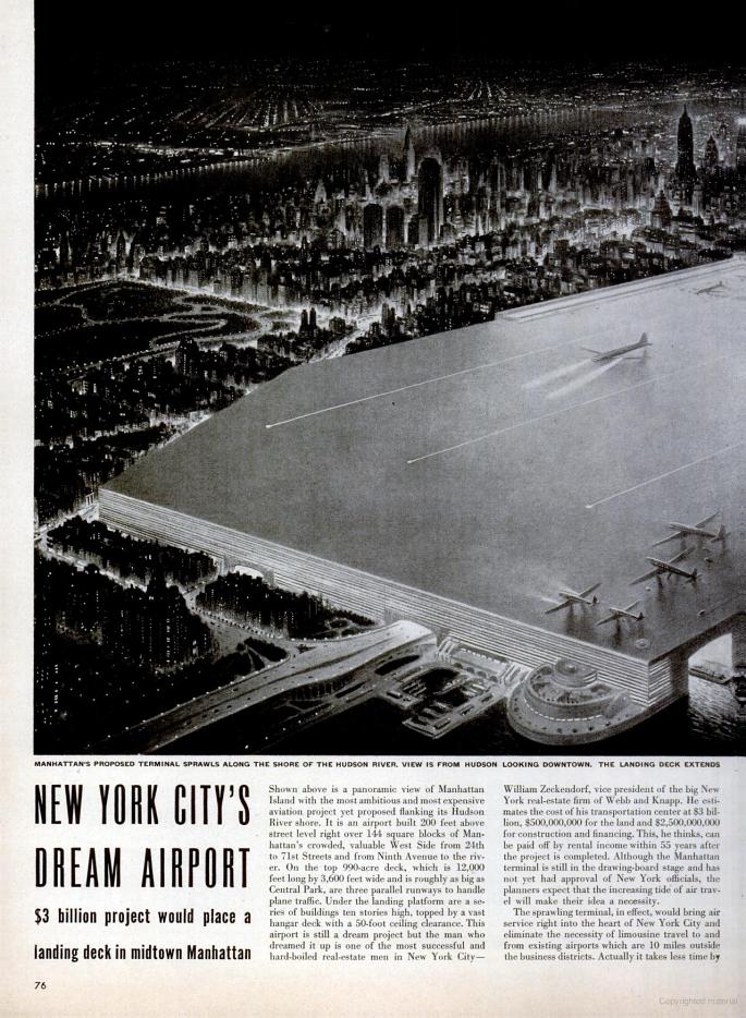 or enormous floating airport islands (like that proposed by Norman Bel Geddes at the tip of Manhattan,