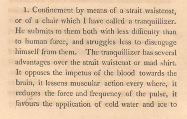 As we can see Rush also commented that the application of cold water and ice would be facilitated with the tranquilizing chair.