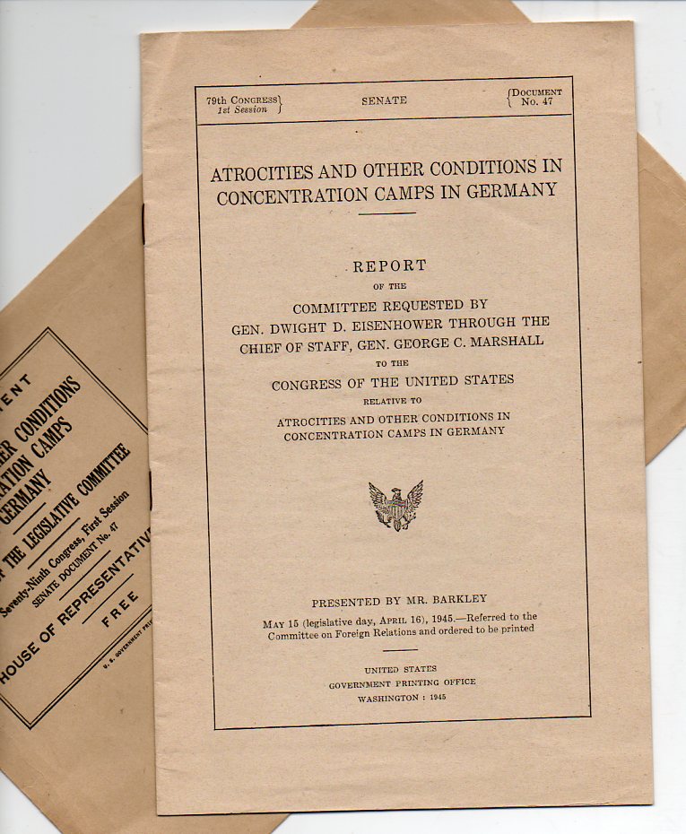 1. The full title of the pamphlet reads: Report of the Committee requested by Gen. Dwight D. Eisenhower through the Chief of Staff Gen. George C. Marshall to the Congress of the United States relative to atrocities and other conditions in concentration camps in Germany ... It is signed by the 12-member committee, the lead taken by Alben Barkley.
