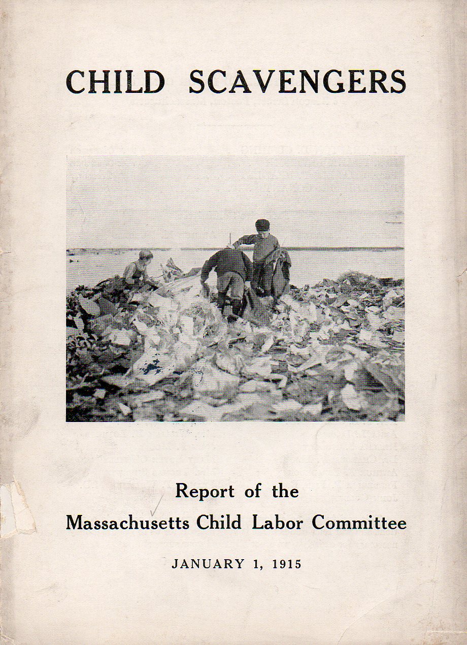 And they did do a study of child scavengers, reporting that in "one dump in a Massachusetts city fifty-five children from five to fourteen years old were moving slowly over an acre of rubbish..." The authors report (unfortunately without reference) that in one Boston school distict of 2,128 children that 125 of them "do this work", and that 500 children in Boston "are so engaged". This didn't include the children who "gathered refuse" from martketsm freight yards, and ash barrells" or who were sent out collected odd bits of dropped wood and coal.