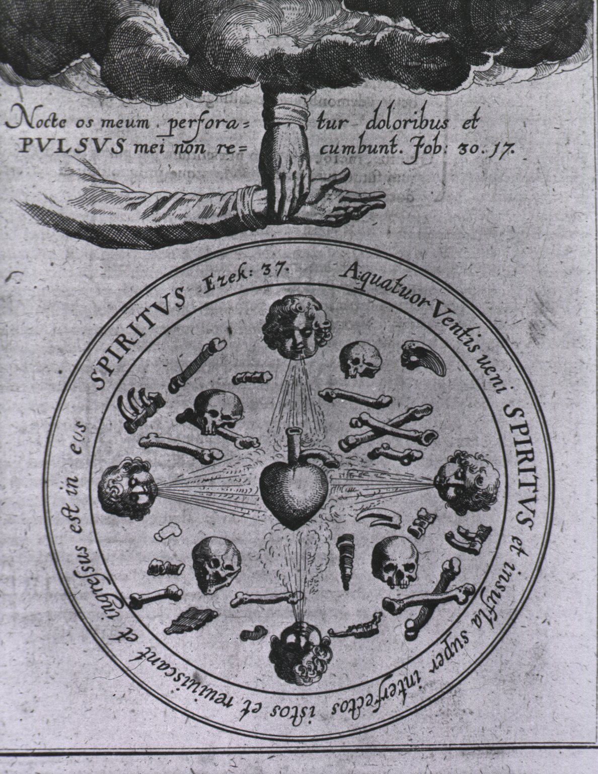 ventricle of the heart of John Pennant, gentleman, of the age of 21 yeares. London: G. Miller, 1639. Illustration of the heart with monster (or serpent) inside it. 1651