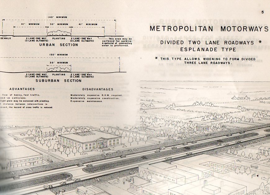 But Jac L. Gubbels1, who copyrighted this work for the State Highway Department of Texas (Landscape Division) saw a prettier picture for the state in the near future, and what it had in it mainly were automobiles. The highways proposed by Gubbels were remarkably wide given the number of lanes, particularly so for those roads that went through small towns.