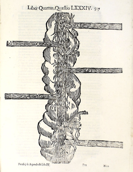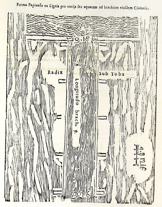 This lovely river/tree appeared as a woodcut in Franciscus Maria Pecchius' Tractatus de Aquaeductus, which was printed in 1670-1673. It actually is nothing of the sort, as it depicts the construction of a dam in a busy river and forms part of a four volume work on the building of aqueducts--ranging from the selection of sites, to financial considerations and of course engineering and materials studies. Pecchius' work was the standard of its day, and it also was the cornerstone work on the (Roman) law of such things, presenting a jurisprudence that stretched back a thousand years.