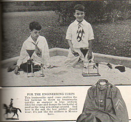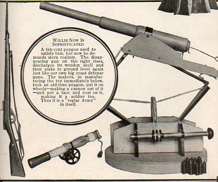 I don't know the Illustrated History of Santa and Gun Gifts, but I guess that a book could be written if one already doesn't exist. Well, that or something associating Santa with unusual, or questionable, gifts in his bags of joy could be made into something, something disappointing. I'm not that person to collect those sorts of images because I have always held Santa in very high esteem, and I don't care to have too many of those images floating in my mind, exploiting some dark corners of unknown memories, disturbing the happy bits with unneeded and unwanted visual info. But, well, these pictures below, found in the December 1916 issue of the uncommonly-seen journal, Illustrated World, provides a little glimpse into the manufactured desires of kid-wishes for toys during wartime, and so I'll pass them along. These things do tell us something about the period--like the famous multiple images of Santa hanging cigarette carton Christmas ornaments (seen here in the post on Gift Porn, 1954), or a smoking Santa stuff a stocking with a box of Lucky Strikes--so it makes sense to make sense of them.