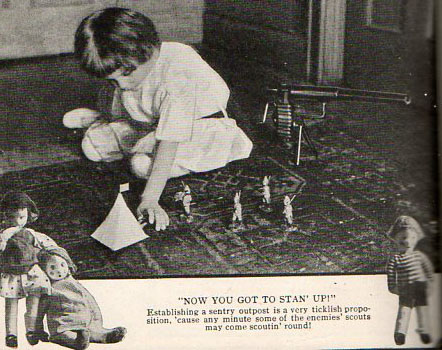 Perhaps the issue of playing with guns and cannons and so on was a way of easing fear and distress during wartime; perhaps it meant something soothing for the developing mind of a child. I don't know.