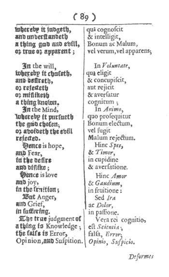 The Soul is the life of the body, one in the whole: Only Vegetative in Plants. Withal sensitive in Animals; And also Rational in man.