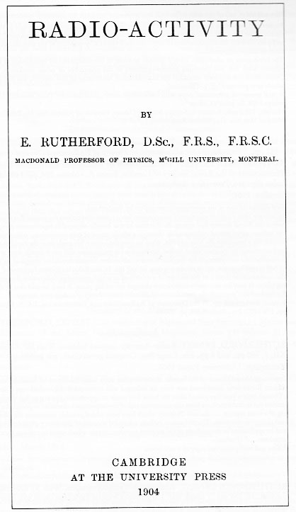 But getting back to blank spaces and following up on the Bohr publication, there is this very fine example from Ernest Rutherford's Radio-Activity (the first edition of Cambridge, 1904):