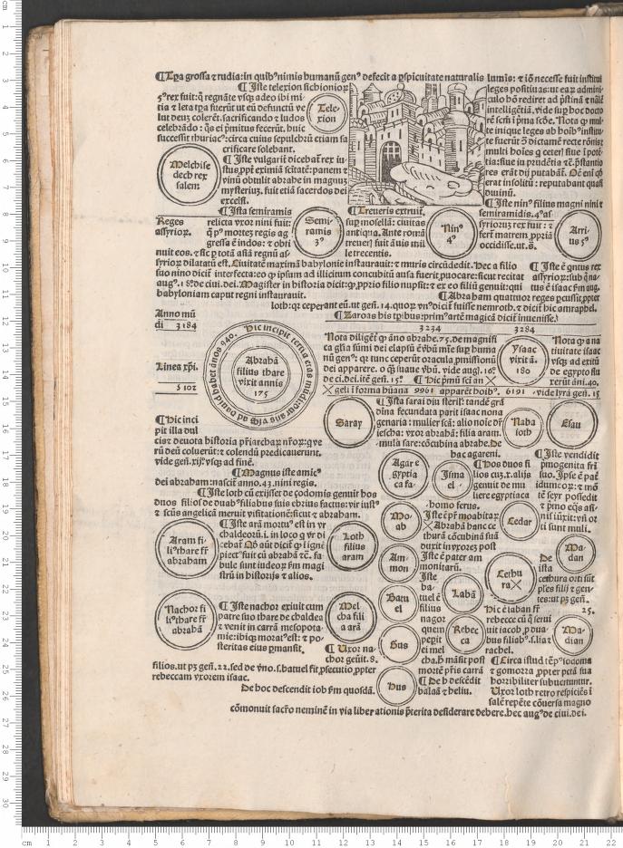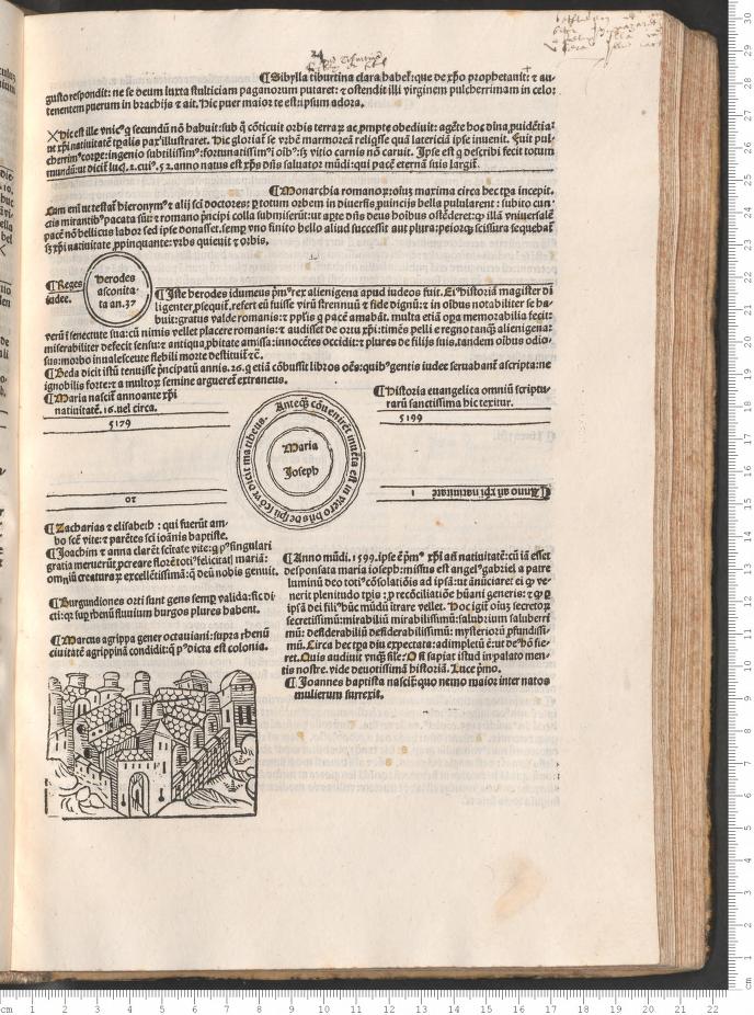 This work was one of the early best-sellers from the time of the Incunabula, a book that went into 33 editions between 1475 and 1500, and into five different languages, and a number of different authors/annotators and publishers--a book with a very full publishing history. The Fasiculus temporum, by Werner Rolevinck (a Monk and renowned historian at Cologne, 1425-1502), and printed originally in 1474, is an early history reaching back to the Roman times, and perhaps one of the very earliest chronological histories. It was a compendium of reaches into dim dust, histories including plagues, epidemics, diseases, monsters and other interesting bits.