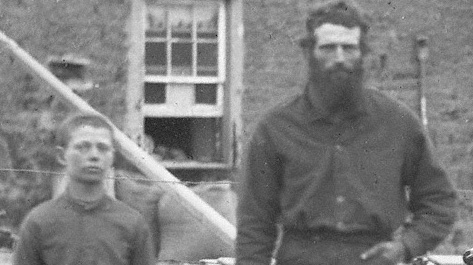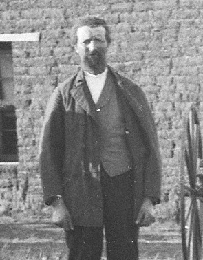 This is seen in Butcher's photographs from time-to-time. In the series of photographs of homesteads, he often captured images of men without hats--seldom the case, I guess, in the normal routine of a day. The men's faces are deeply tanned except for where the hat is pulled down to the middle of their forehead, where we see a much lighter complexion: