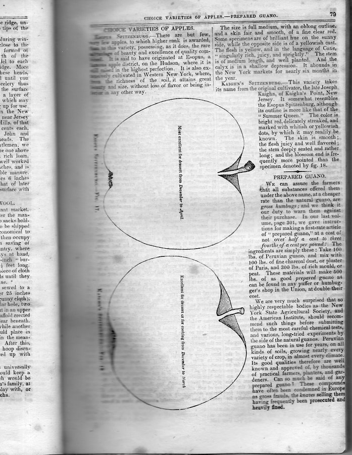 [Source: "Choice Variety of Apples", in American Agriculturist, New York, 1848, vol VII/no. III, page 79.]