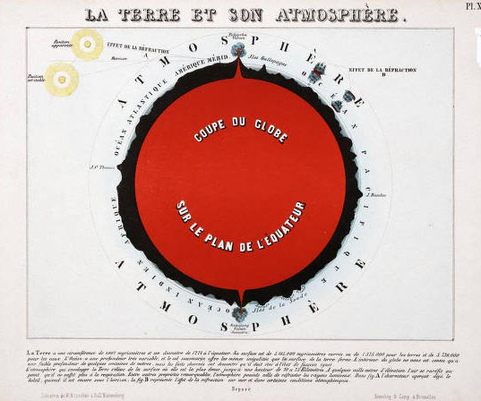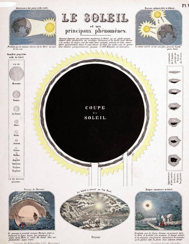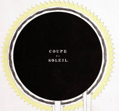 What I've selected though from this beautiful work are the cross sections of the Sun and the Earth. [Also of interest: an earlier post on this blog, Earths Inside the Earth, a Note on Interior Civiizations.]