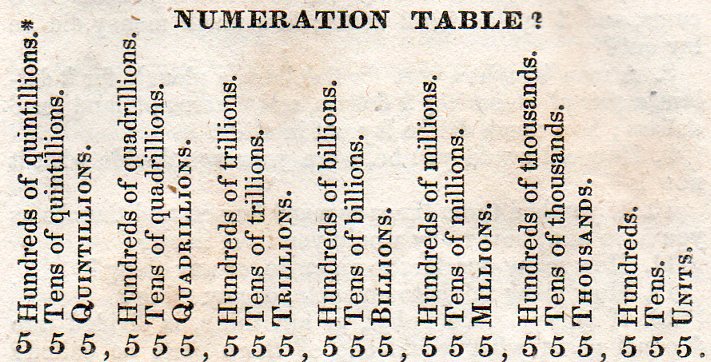 This beautiful table appeared in Roswell W Smith's Practical and Mental Arithmetic, on a New Plan, in Which Mental Arithmetic is Combined with the Use of a Slate..., which was a soaringly successful book, this being the 53rd edition (!) and printed in Hartford in 1836. (Smith was a busy man, writing several other standard and widely distributed works in geography and grammar).
