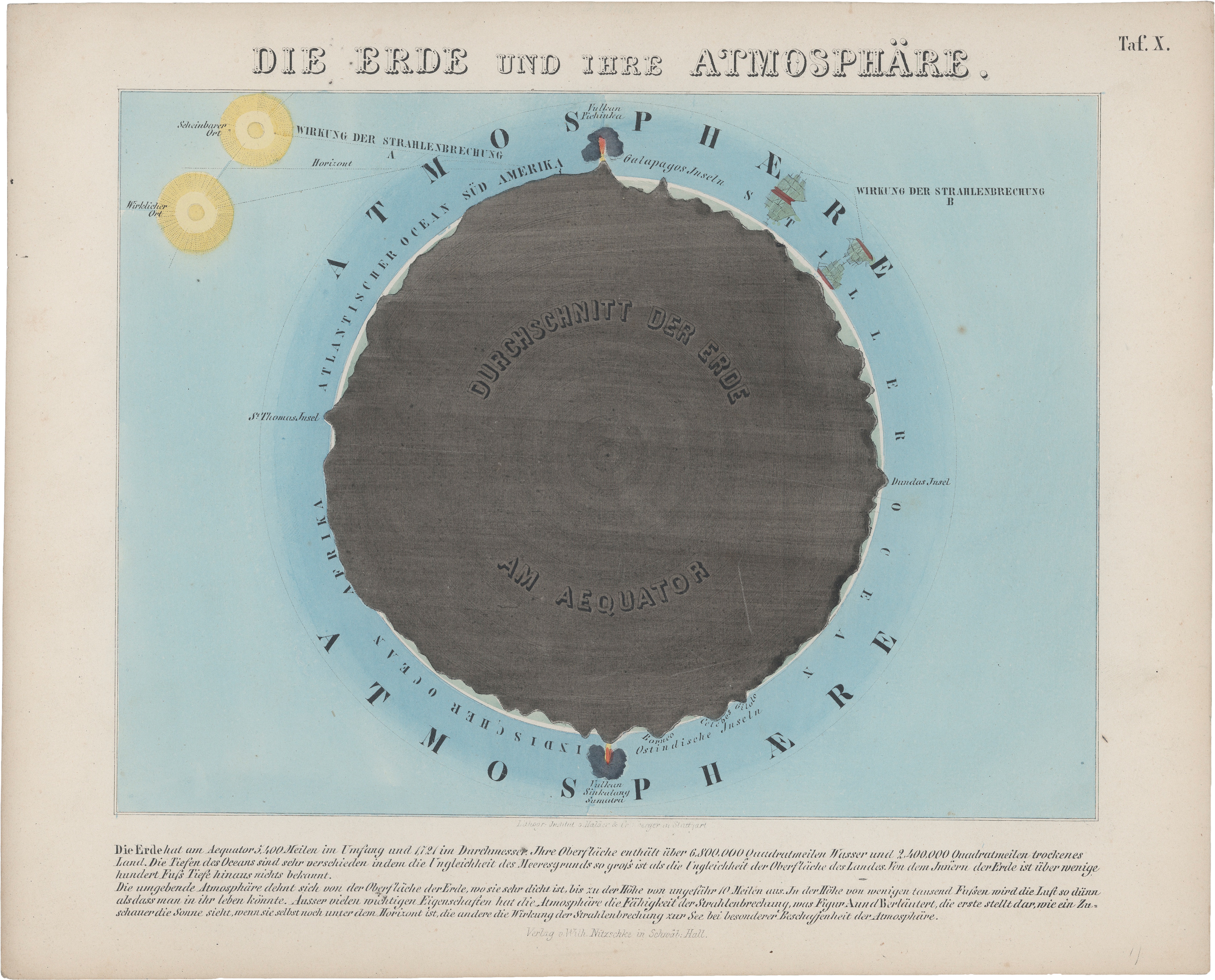 - "Der Erde und Ihre Atmosphare" from Astronomischer Bilderatlas, by Ludwig Preyssinger, published in 1853 (with 12 engraved plates1, following the first edition of 1840, which had 10 plates). Source: found at Michael Stoll's flickr set, a superior and large image, here.]