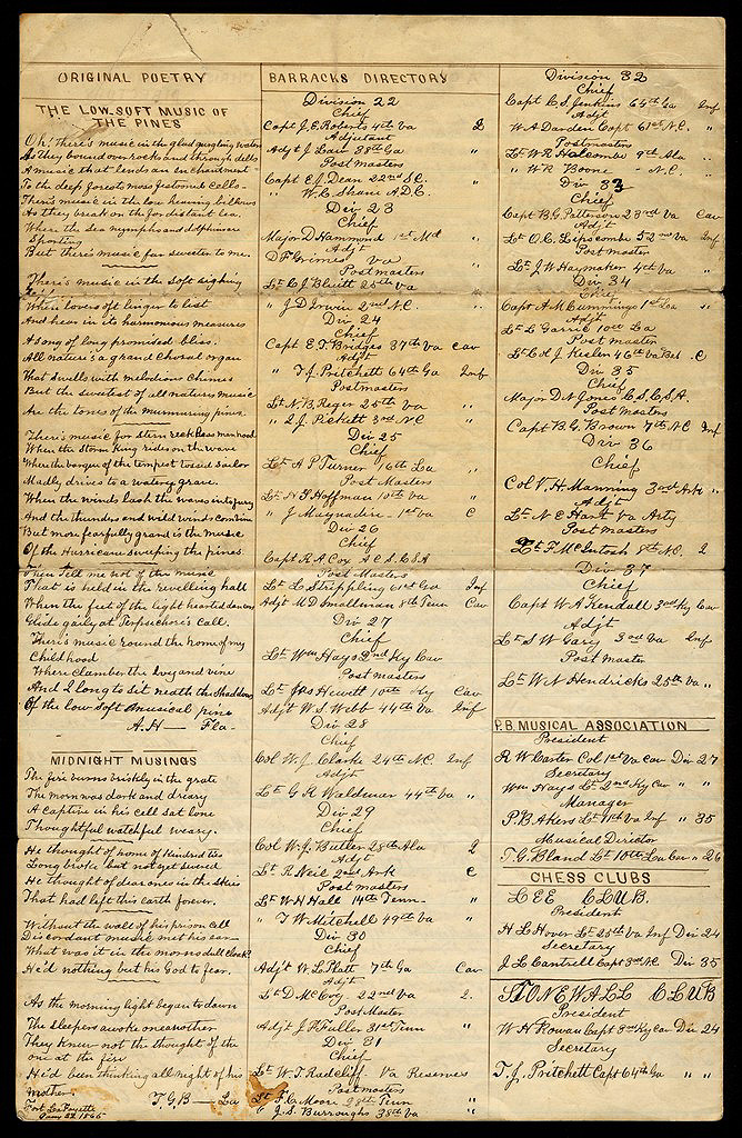 "Trusting that the difficulties of conducting an enterprise of this kind under the circumstances are duly appreciated by an intelligent public, we send forth this our first number hoping that ere we can have time to issue many numbers our prison times will be discontinued forever and our patrons and ourselves be far away in our loved Sunny South."