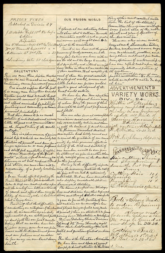 Prison Times, a newspaper published in April, 1865, by Capt. Geo. S.