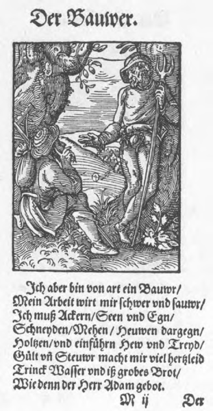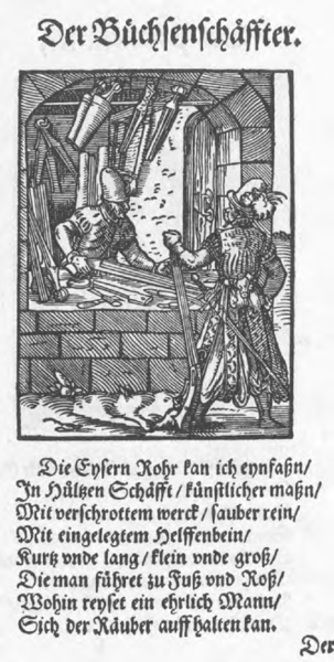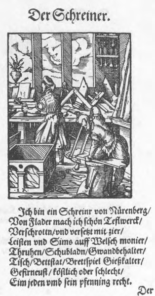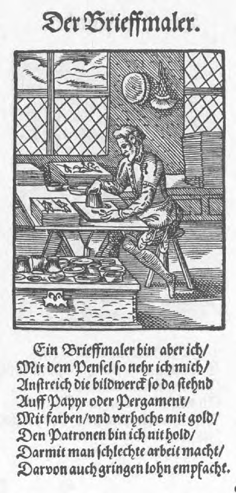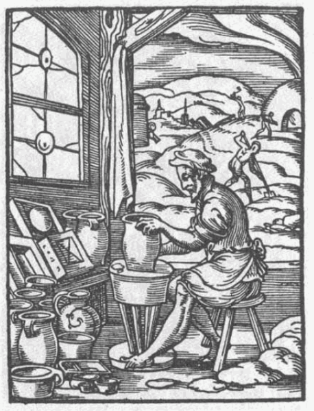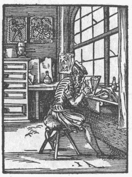 The great Jost Amman (1533-1591, Swiss book illustrator and one of the last major production artists working with woodcuts) didn't set out to create a simple alphabet of trades, but did record them, and did so with great clarity, basically creating a 16th-century pre-photographic "snapshot" of the ways in which people conducted their business and livelihood. The illustrations come from his work with Hans Sachs, Eygentliche Beschreibung Aller Staende Auff Erden, published in Frankfurt am Main in 1568 (the full text here from Bibliothek des Seminars für Wirtschafts- und Sozialgeschichte, and another useful full-text here that indexes the images and another here for an English indexing of the trades). The images are precise and sparse, and endlessly interesting, an uncommon peep into the common past that was n