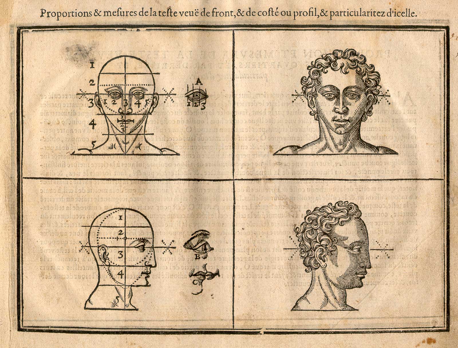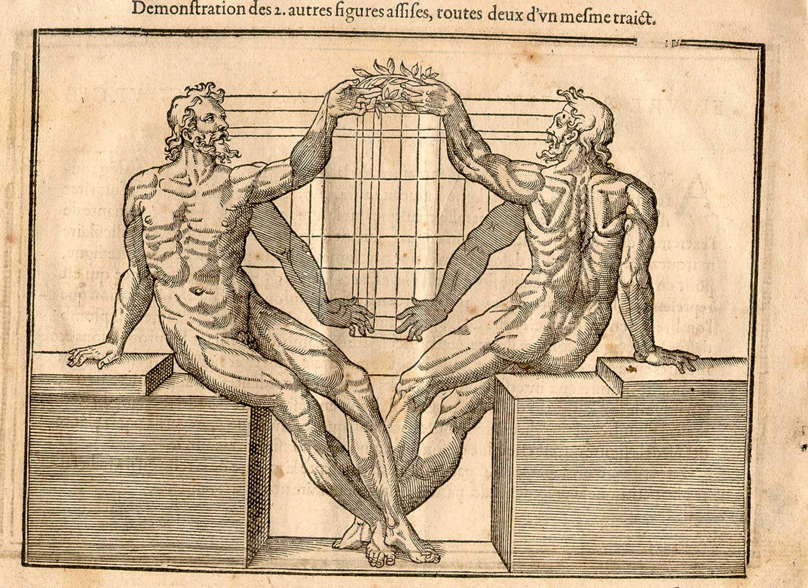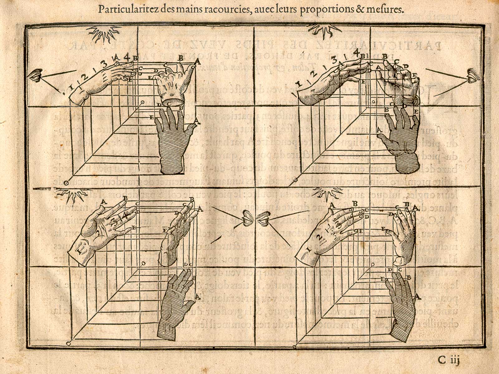 I'm not sure if I've ever seen a 16th century human perspective drawing showing the body in plan and elevation and cross-section. Jehan cousin the younger (1522-1595, in France), the son of Jean Cousin the Elder (1490-1560), a painter and sculptor, produced such an image in his Livre de Perspective, which was published in 1560. Well, the image definitely was published in 1560, though the artist may have been father and it may have been son--they worked closely together, and the Younger was taught at great length by the Elder, so much so that their work became indistinguishable. Nevertheless, the images I think are quite extraordinary, as we see below: