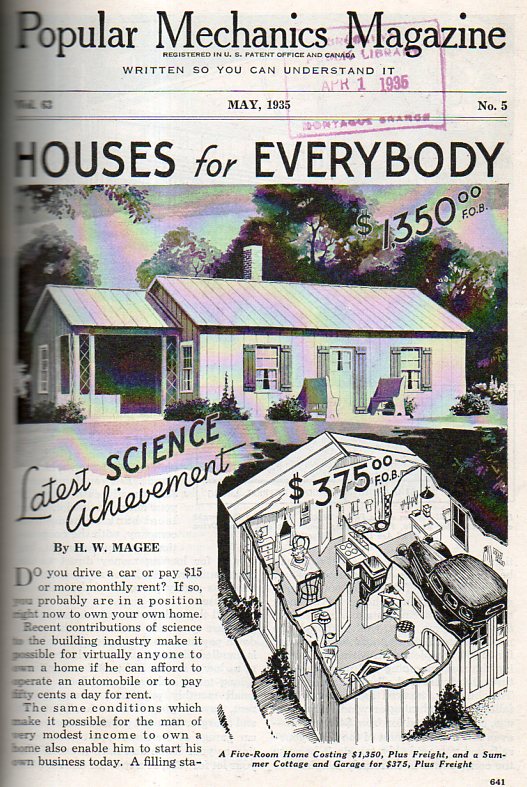 Given that the average American made about $1600/year, and the average house cost $3200, and the average car rolled in at $650, the prospect of such inexpensive structures must have seemed appealing to the average reader of Popular Mechanics in 1945. It is particularly interesting that the automobile had become such an integral part of the family.