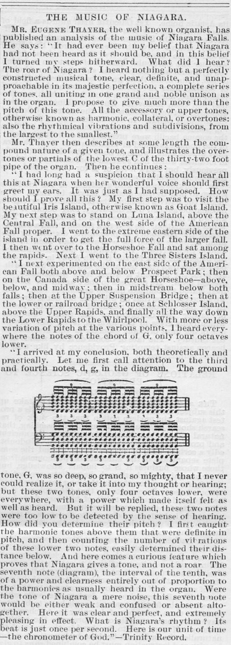 At least music is what Mr. Eugene Thayer heard when he listened to the falls, and apparently he heard what few others did.