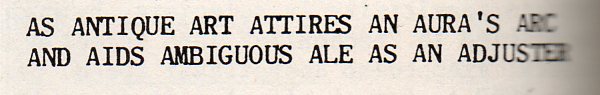 All I have in this question is the question, and one that I believe I have not seem before. There are certainly much earlier ideas published on writing machines--Lemuel Gulliver encounters such a beast in Laputa in his third voyage, and there's also Ramon Lull's writing device--but they were more popularly published. In this case I'm referring to poetry made by a computer that is composed by the machine, not hypertext mark-up digital poetry, and not a poem-generator, nor code poetry, nor visual programming, but a computer Poe, and published in a technical journal. It is unknown to me when this first happens, though I did find an unusual and very early appreciation of such a thing in the May 1956 issue of Computers and Automation. A snippet from this early effort is here: