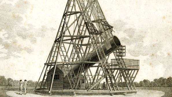 A "Mad King" entered the world's greatest telescope just before it was completed; 51 years later after a good life in the skies, children played inside of it in a garden, the telescope horizontal and asleep. Between those times William, Caroline, and John Herschel used it and the data it produced to perhaps the greatest end of any family that has ever worked in the field of astronomy. They were the great classifiers in astronomy, and their telescope, constructed between 1785 and 1789, 40' long and with 48" mirrors, was a contributor to that, and was the largest telescope in the world for about 50 years.