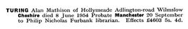 - Alan Turing (d. 1954) £4,603 (£91,041.68)