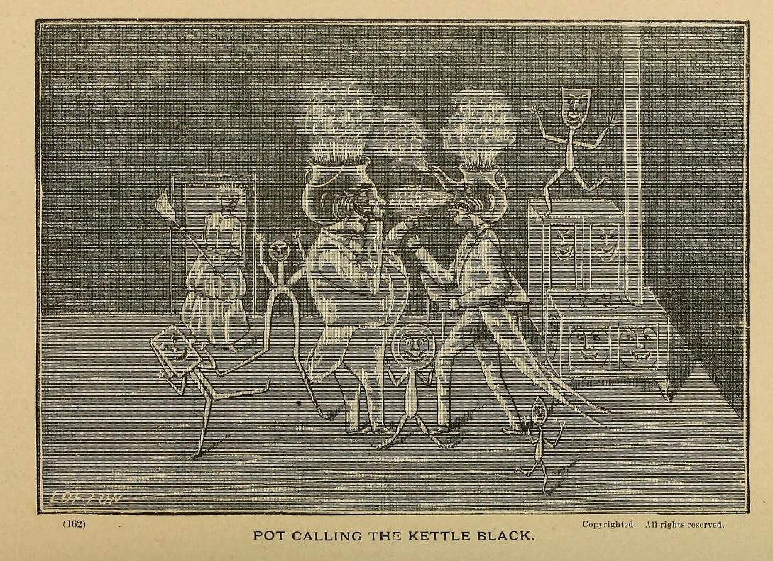 Character Sketches or the Blackboard Mirror, a Series of Illustrated Discussions, Depicting Those Peculiarities of Character...Subjects Illustrated With Over Fifty Engravings, by George Augustus Lofton (1839-1914), is a peculiar but not necessarily transcendental religico-social-morality screed in the vein of more antiquarian emblem books. The major attraction to the work were the very unusual, half-edgy, unschooled illustrations for the morals investigations made by the author--which do approach a sort of transcendental nature, all on their own. The text I'm afraid pulls the drawings down some, as I'd rather work the stuff out with just the image and a title, the descriptions becoming very quickly a preachy jaundice of judgment more so than insightful observation--though the descriptions of the images do have their moments from time to time.