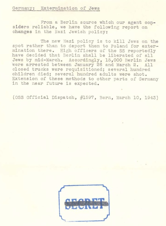 "Report by the Office of Strategic Services on Germany’s Extermination of the Jews, March 17, 1943:"