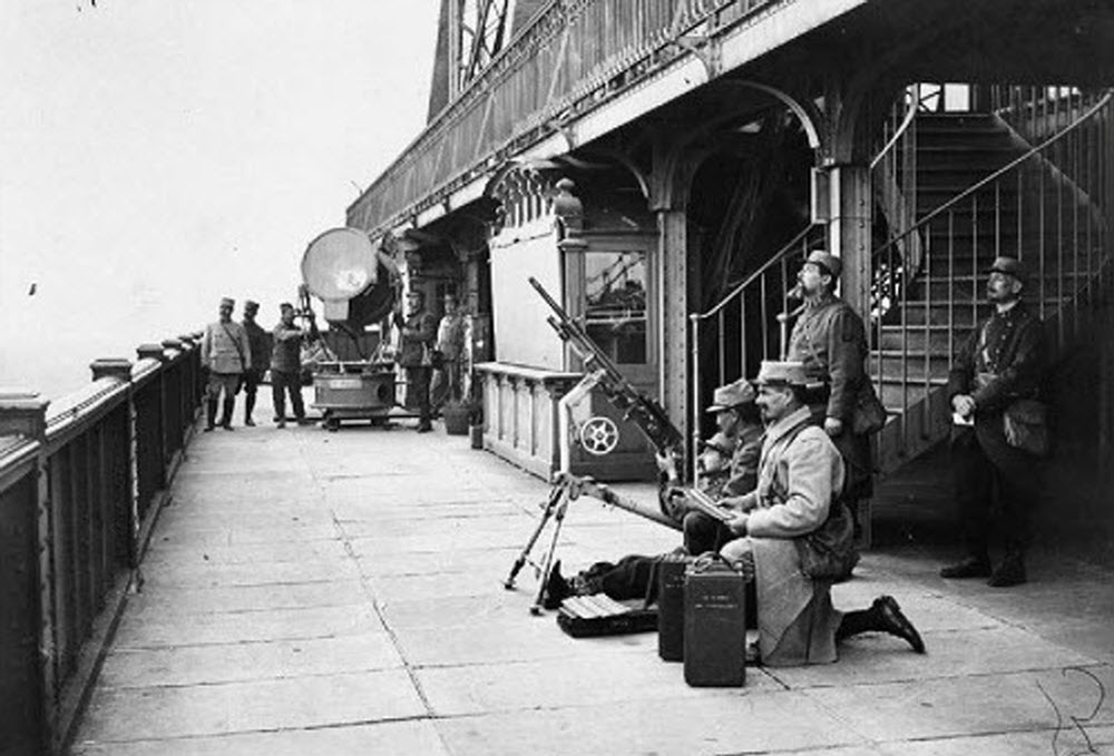 And as long as we're on the subject of air defense, I'd like to include in this post some images of machine guns on the Eiffel Tower (about 1916):