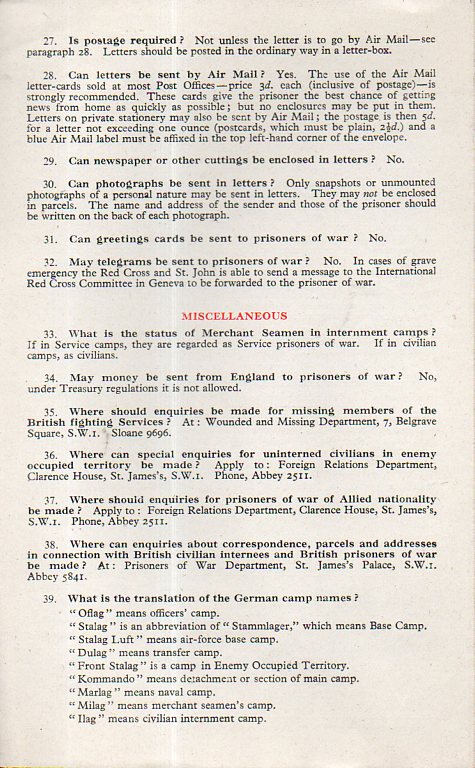 The leaflet provided this hopeful template for addressing an envelope to your POW: