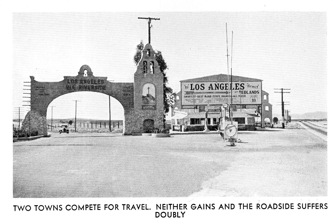 In the meantime we can dwell on what we have, though with the removed bad idea landscape, it is more difficult. That’s why it is important every now and then to familiarize ourselves with them when the opportunity arises, which is just what happened with this innocuous-sounding pamphlet, The Roadsides of California, a Survey1 (1932) Its not like it’s Pandora’s box–we can open this one and just a few, limited baddies come out, and fall limply to the floor. But what we see is interesting, a slice of our memory of the horizon–a part of our “progress” that we’ve tried to excise–and what we can see now are the removed and forgotten things.