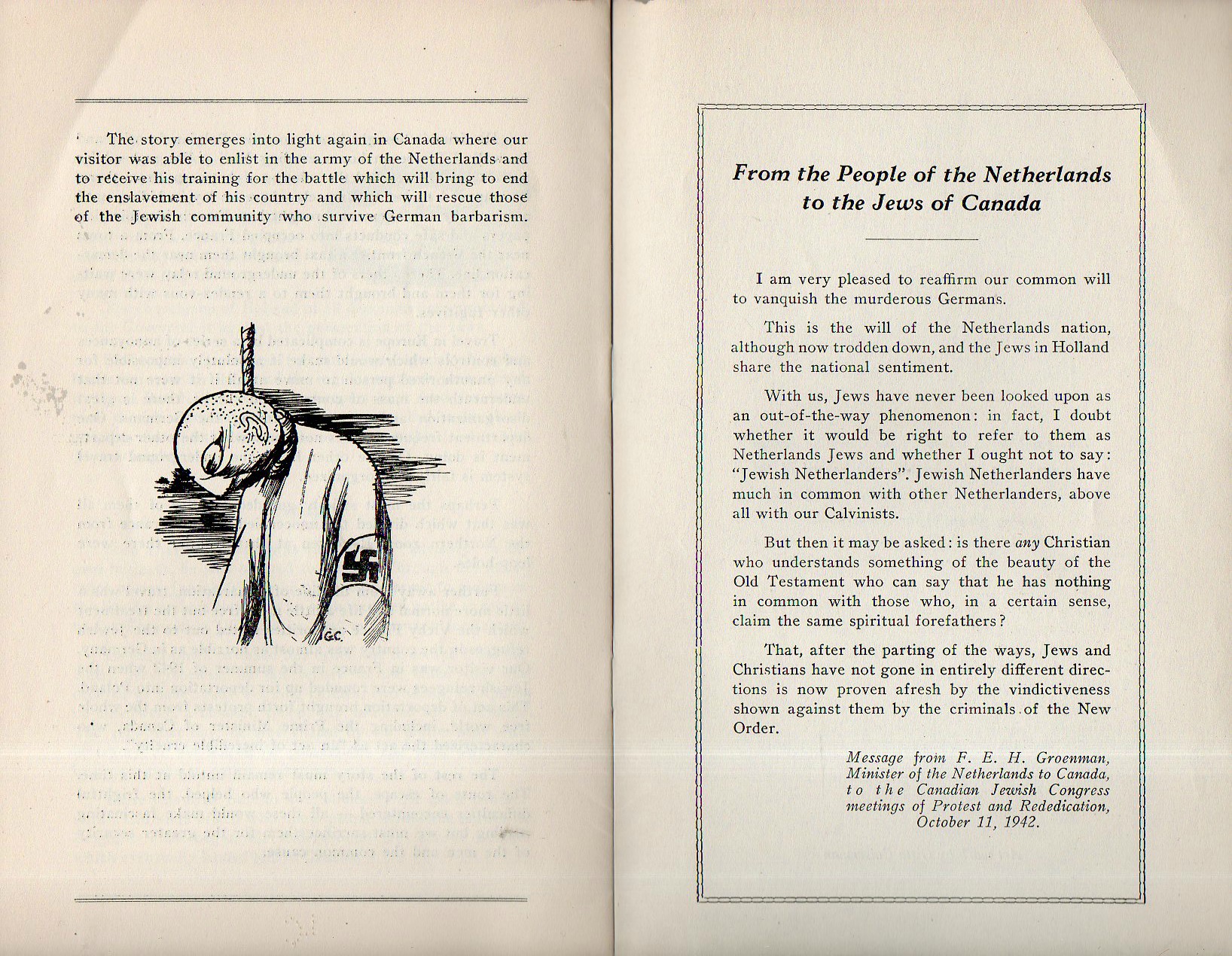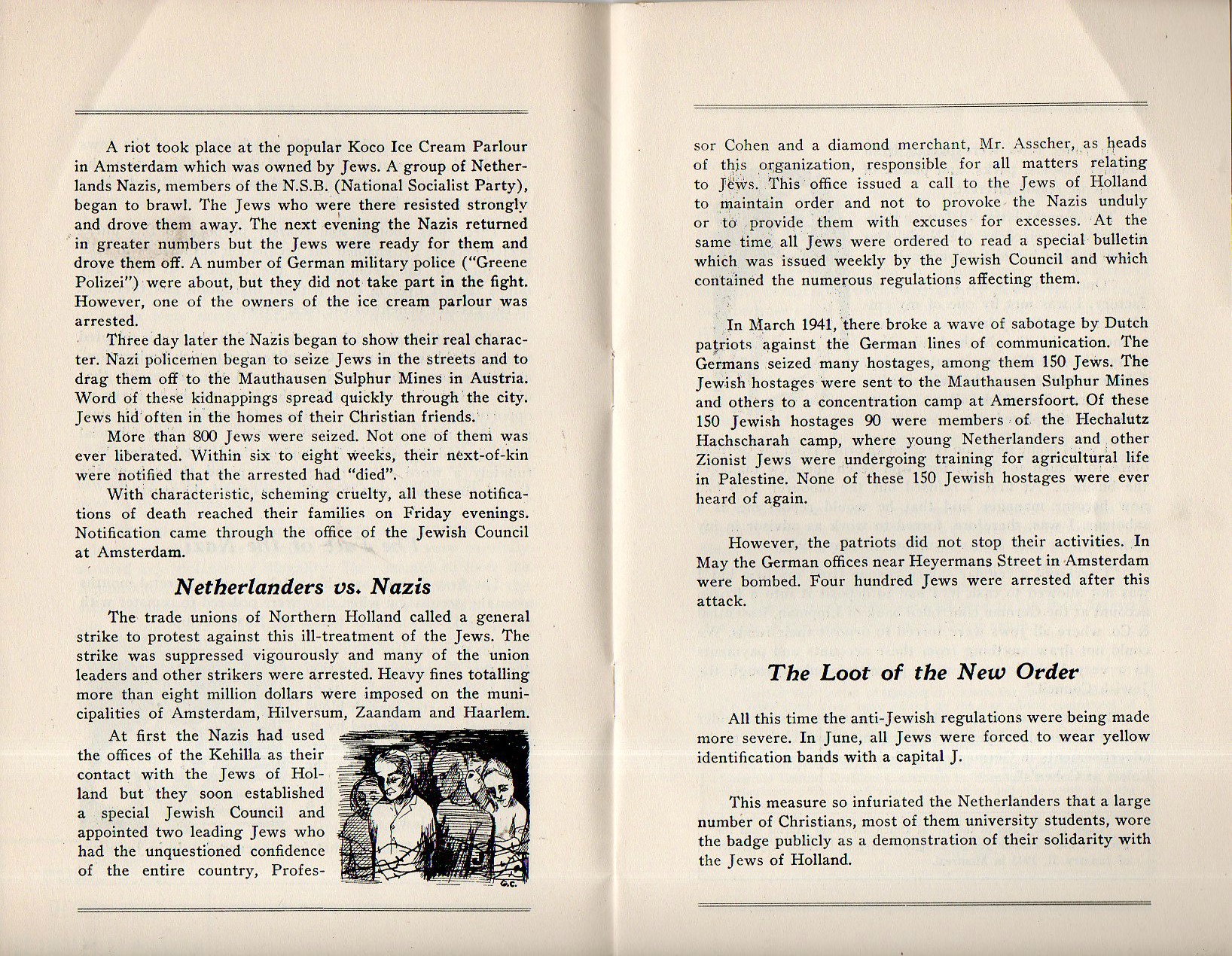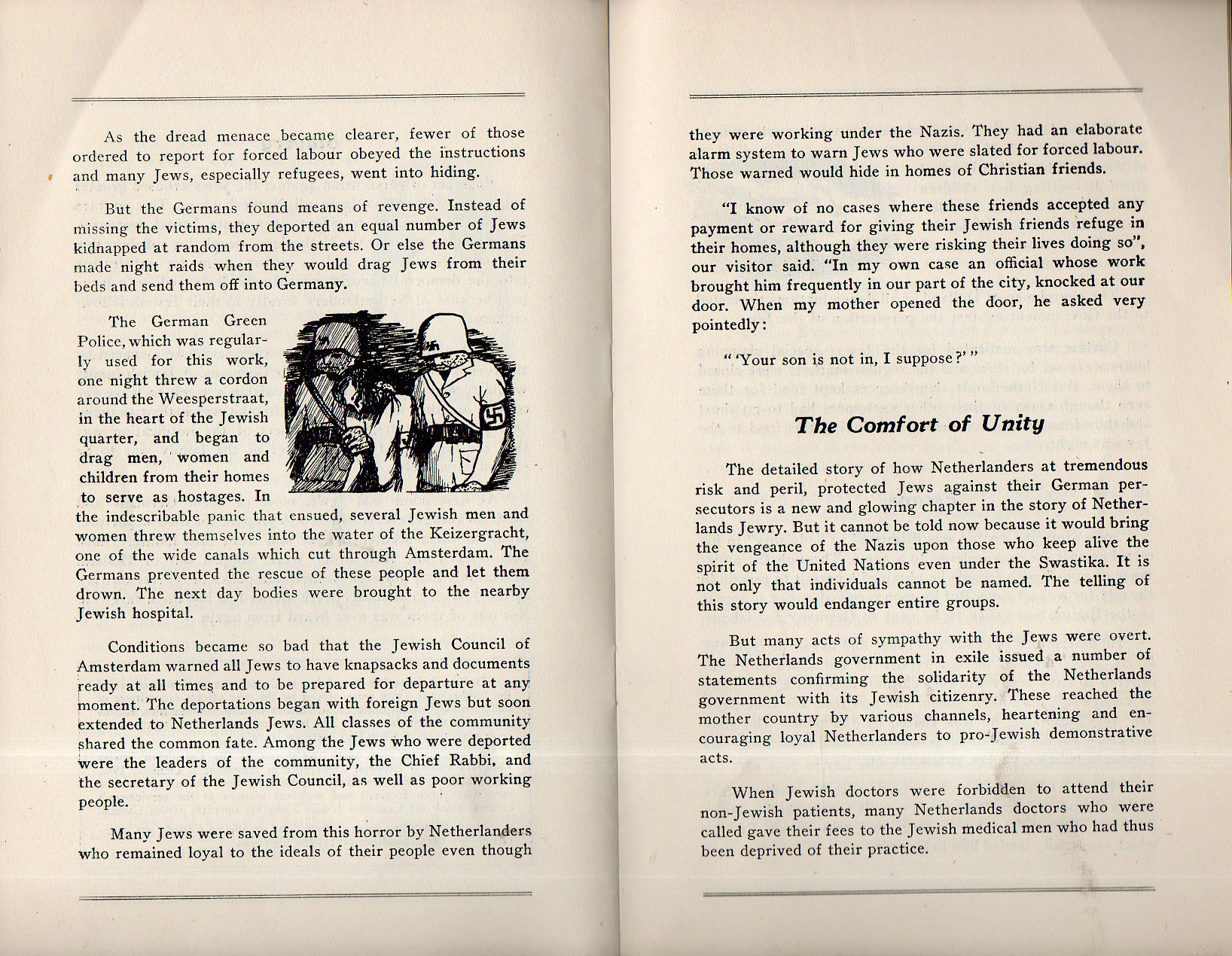 Witness from the Netherlands is a frank and concise eyewitness account from a Dutch Jew escaped to Canada, his account being published by the Canadian Jewish Congress in Montreal in 1944. He tells of a calm period at the beginning of the occupation by the Nazis and their efforts to ingratiate themselves with the Dutch--one of those methods was to ostensibly form an emigration policy for the Jews and having them register with the "Central Committee for Jewish Emigration". The facade did not last long, and the rest of the pamphlet is devoted to the violence after January 1941. The rest of the story is left to the reader--the pamphlet is only about 4000 words, and it is a recommended read.