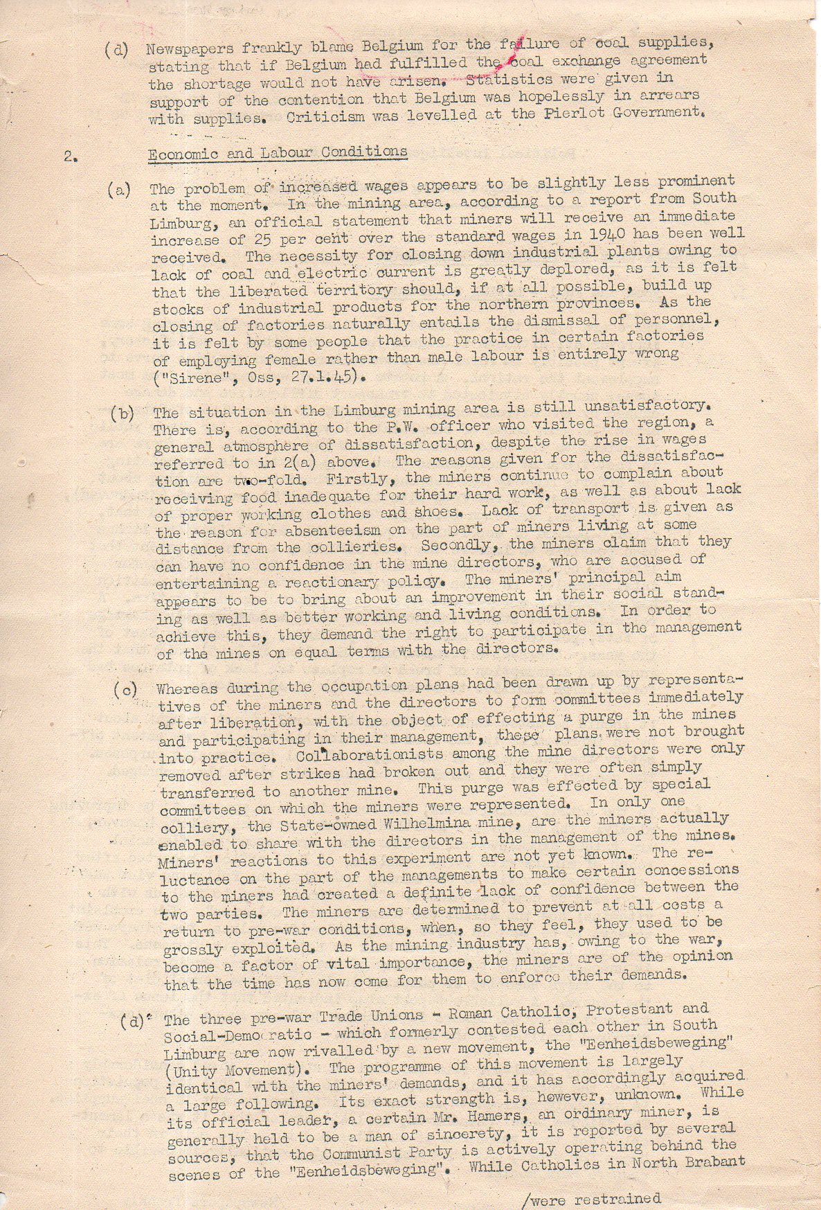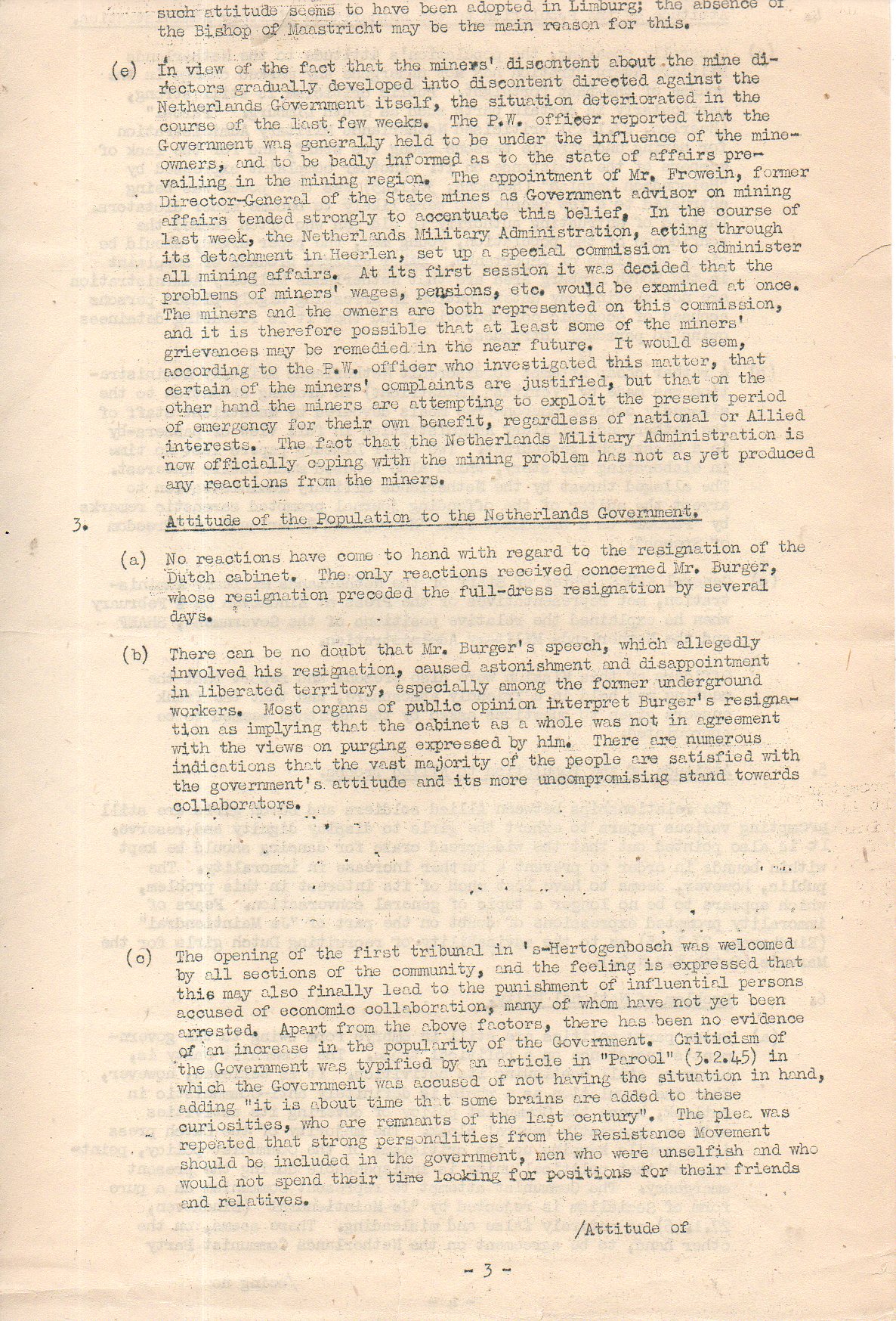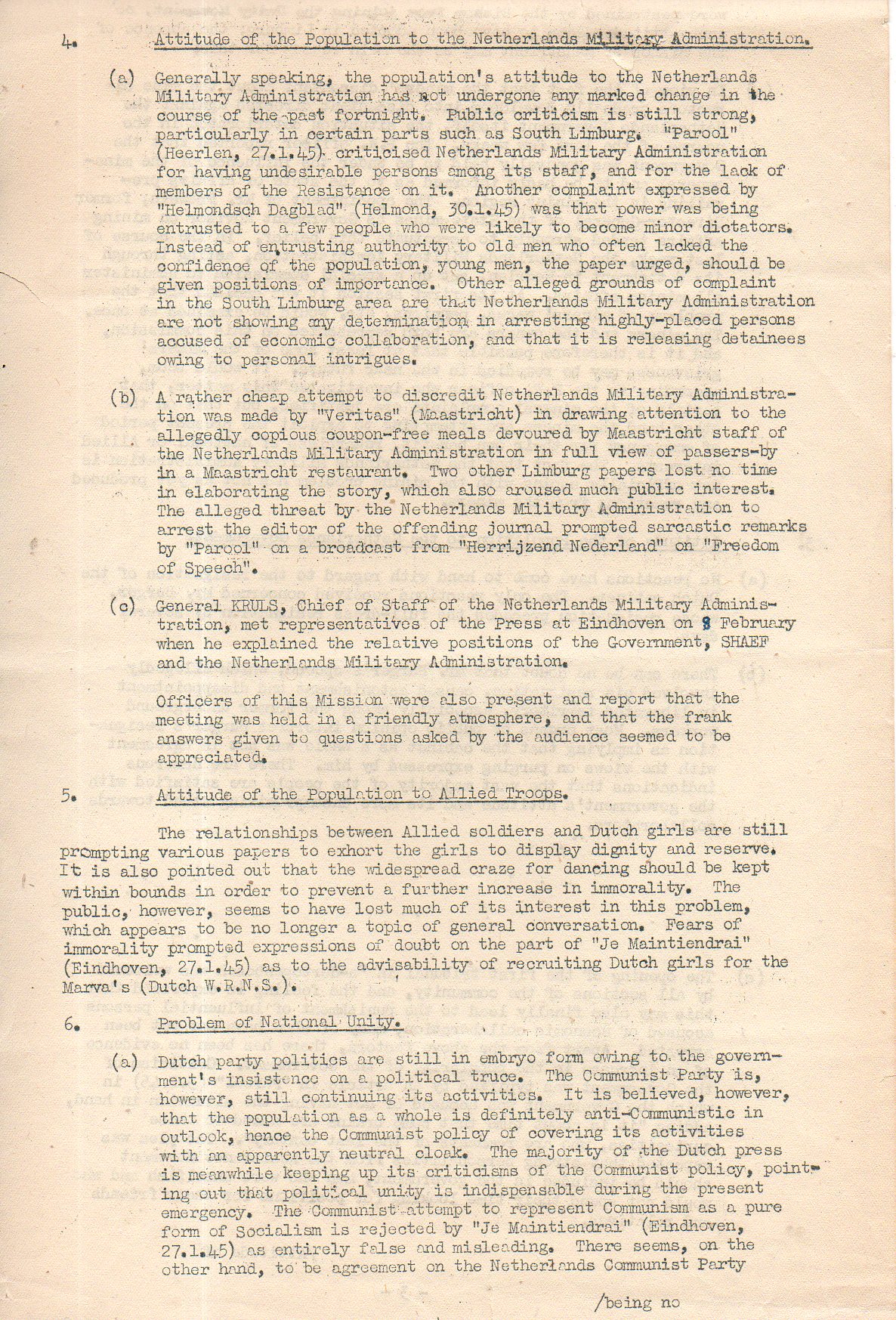 S.H.A.E.F. Mission (Netherlands) Political Intelligence Report No. 5. For Fortnight ending 14 February 1945.