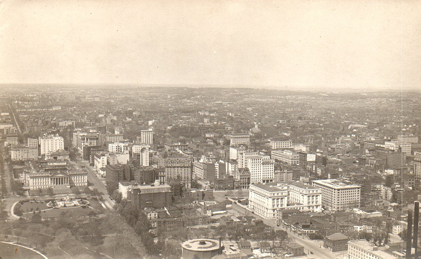 Original Panorama-Style Montage View of Washington, D.C., ca. 1914. These images were taken from the Washington Monument, and perform nearly a 360-degree perspective of the city. The major and obvious clue for the date of these photos is the Lincoln Memorial--rather, where the Lincoln Memorial would be. Photo #2 shows the beginning of construction, which began in 1914 and which would take until 1922 to complete. Each is 80x135mm, or 80x1145 mm all together, or 3.25" x 38.5" (actually, about 30" long once overlap is considered).