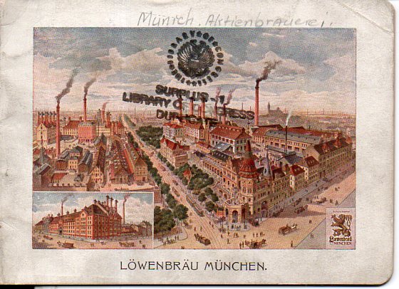 1. Aktienbrauerei zum Lowenbrau in Munchen, which was probably published by the brewery, and printed pre-WWI, ca. 1910 or so.