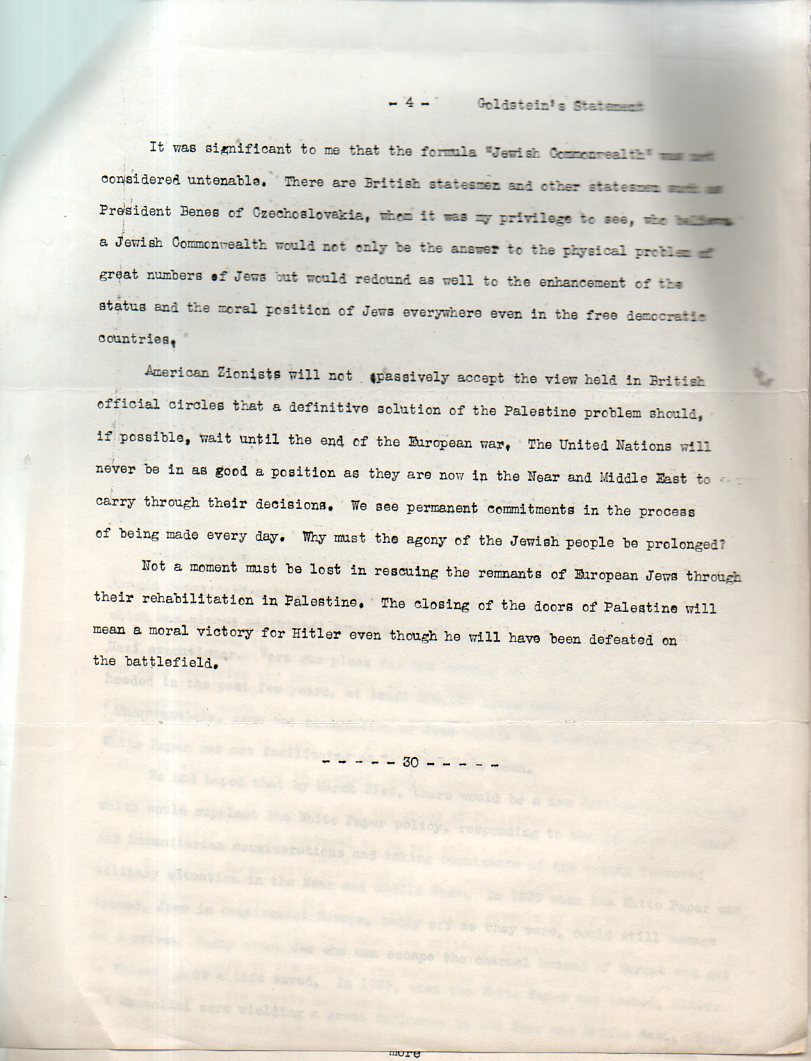 [“Like another black curtain about to be rolled down upon the last hope of escape, the White Paper of 1939 ominously threatens to close all further migration to Palestine,”--Judge Morris Rothenburg, Jewish Telegraphic Agency, http://www.jta.org/1943/09/13/archive/dr-israel-goldstein-elected-president-of-zionist-organization-of-america]