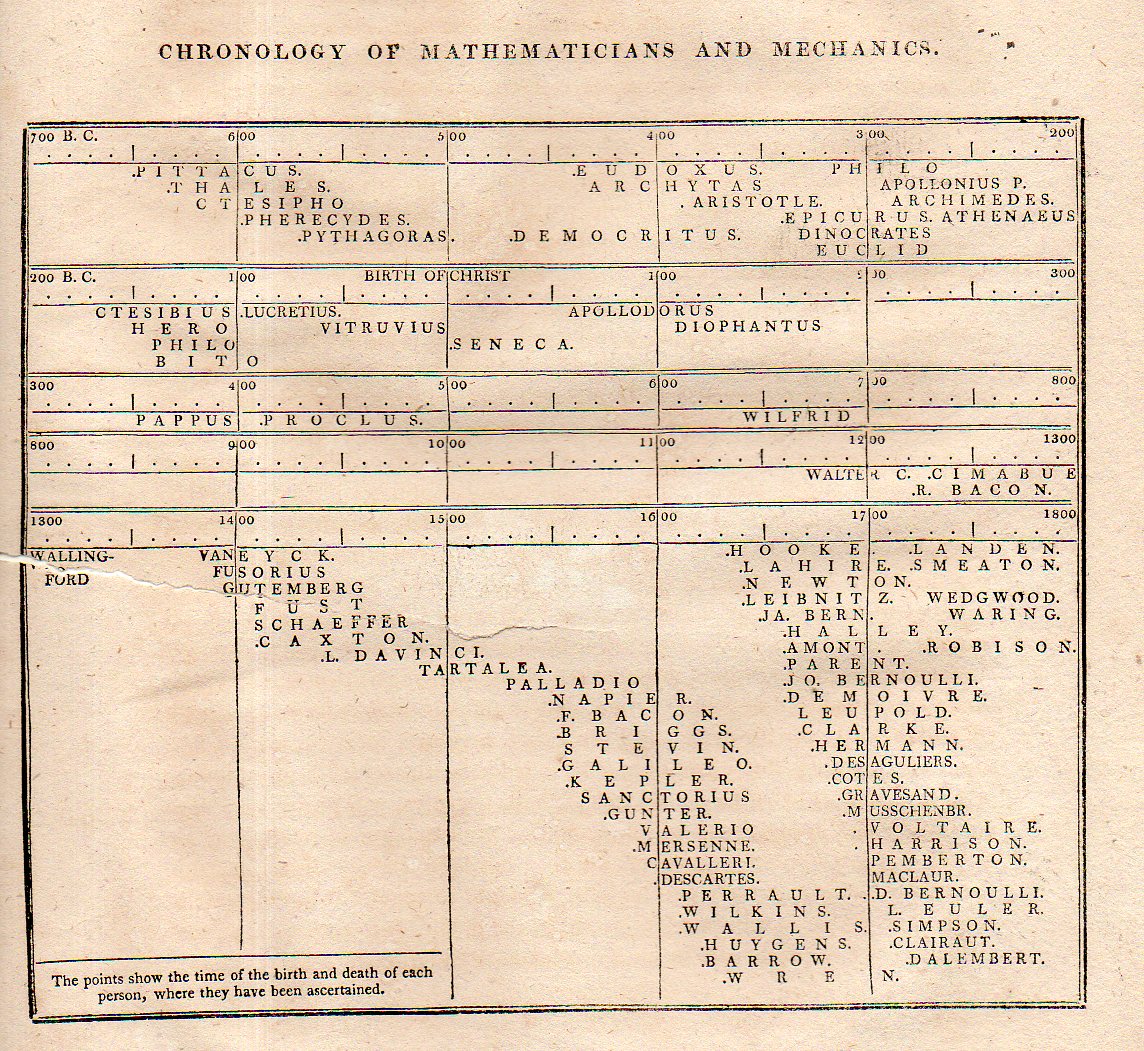 I've always liked these timelines as they graphically display the lifespans of scientists/mathematicians/etc against one another, making it a little easier to see a selected period and who was active within it.
