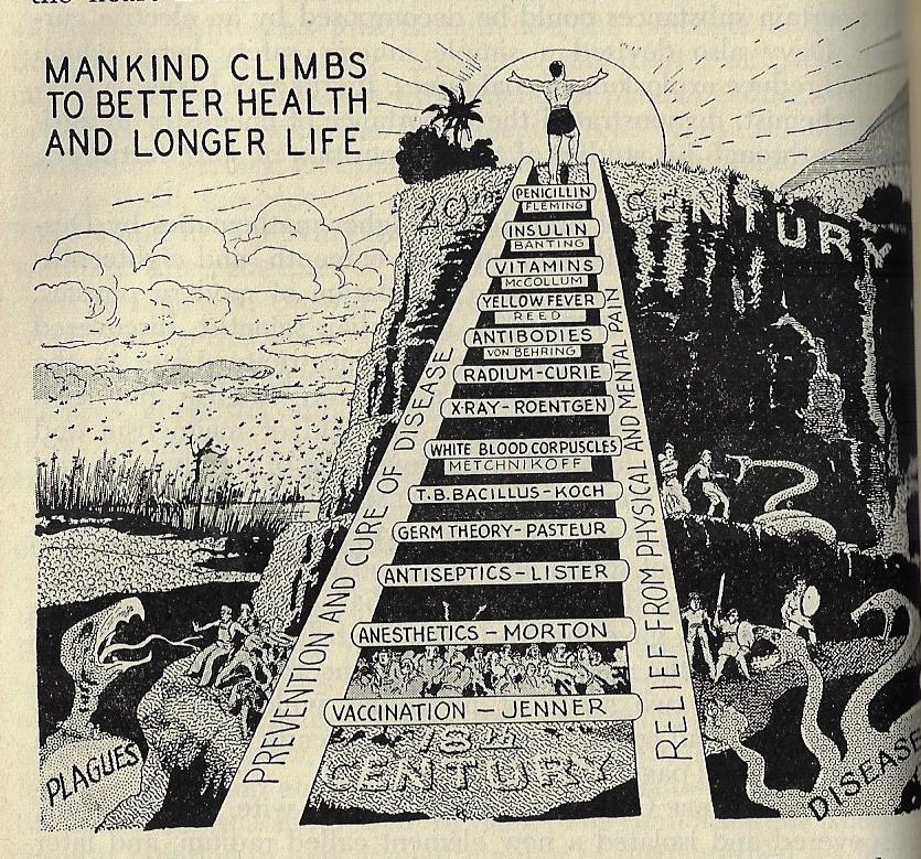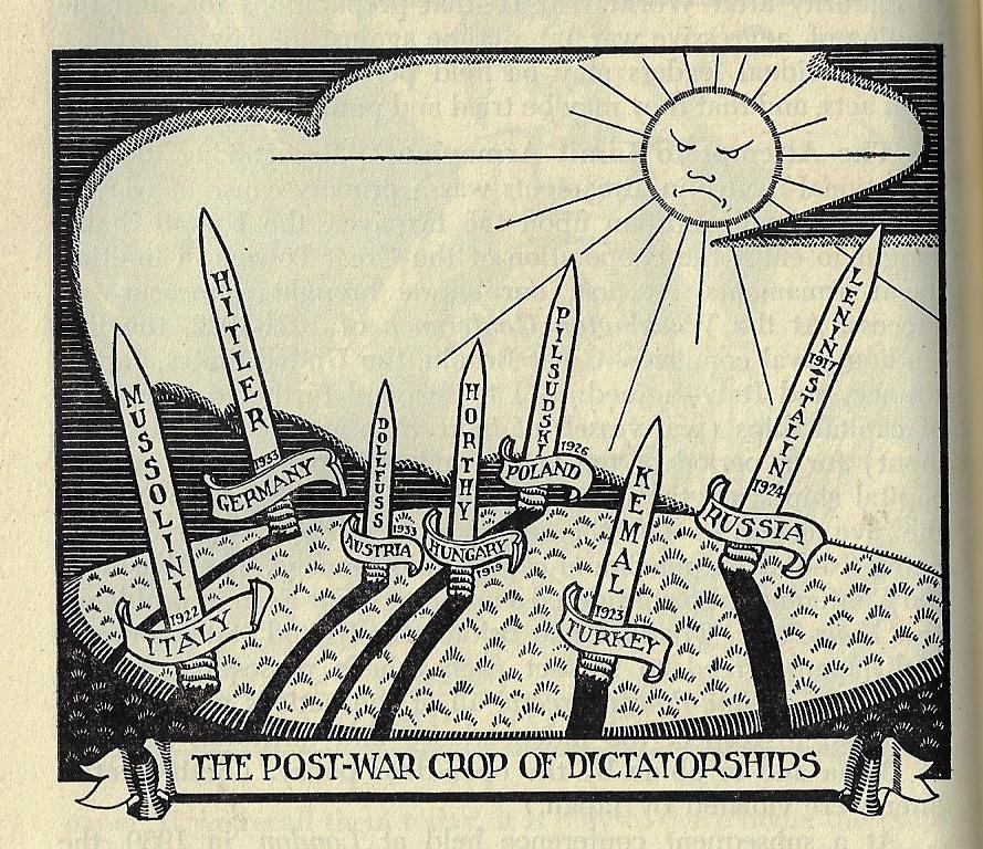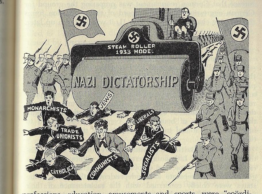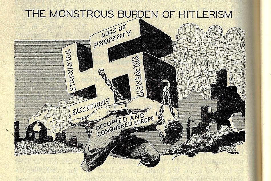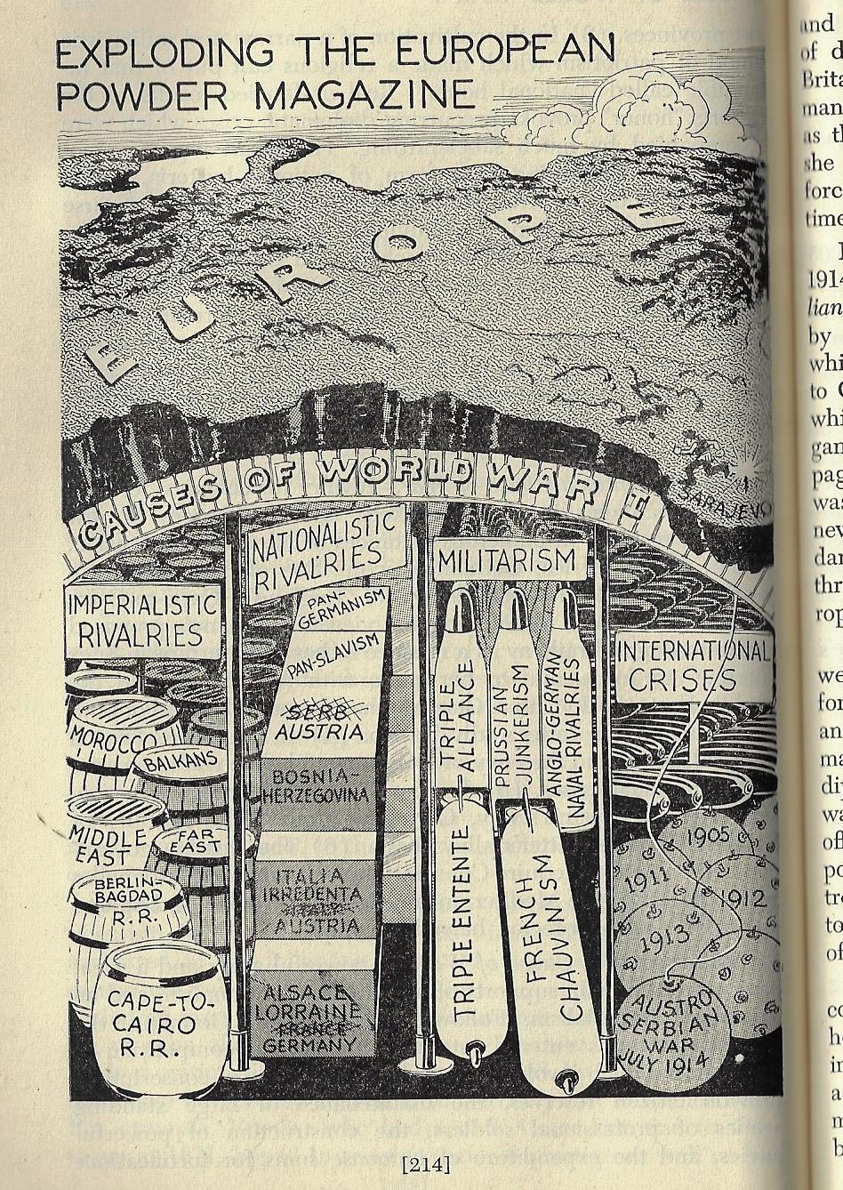 It would have been easy to judge this book by its cover--and the strange bit about that is that you would've been nearly correct. Philip Dorf's schoolbook history New Visualized Modern History was published by (not the) Oxford Book Company in NYC in 1947 has a certain look in its design that seems more like an odor. There's some amount of talent in the illustrations that make it seem studied, except that there are many more elements that make it seem not so. The text (fairly extensive and compact in 388pp) looks to be well-written and accurate (or at least not the opposite) but it is interrupted by dozens of illustrations that are highly contrasted, very heavy, blocky, immobile, strained, and somehow off-putting, but in the final result the drawings actually seem to work, delivering their message, if not in an inelegant steam-filled roller derby way. Perhaps they're worthwhile after all, except that it is difficult to like something that you really don't.