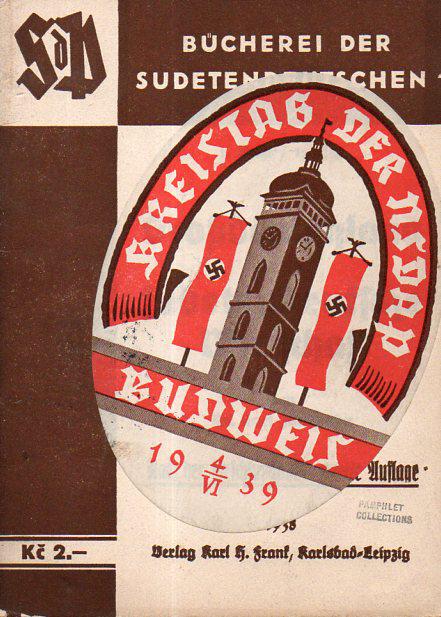 This pamphlet1 by Karl Janovsky seems to be a very thorough and heavy piece of German-interest propaganda regarding the Seudetenland, and seems to have been printed prior to the "annexation". The tragic front cover bears a label for the meeting of the NSDAP Council in Budweis, Czechoslovakia, for June 4, 1939. Unfortunately we see the famous 16th century Black Tower desecrated by two large Nazi banners. The tower survived; the Nazis didn't. (Also--Budweiser, the U.S. beer, was originally supposed to be a knockoff of the famous bier brewed here since the 14th century--after a while, Budweiser USA "changed directions" in the taste of their beer, but kept the marketing and brand, which is enormously valuable.) And so one of the statistical maps, showing a chart of imports from Germany into Czechoslovakia: