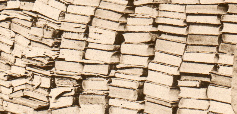 In the vast caches of loot taken during the course of war I suspect books have ranked somewhere in the middle of stolen stuff--no doubt some fine libraries have disappeared, though I can't offhand say how many fine libraries emerged from the slaughterhouse. This photograph--a wartime news photo service image--is one of the few that I have seen depicting the capture of stolen books.