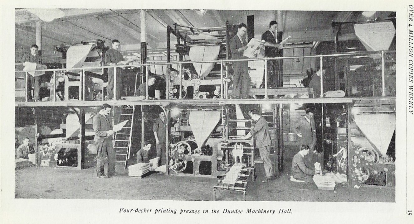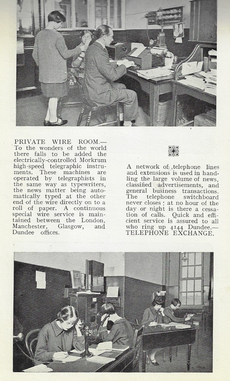 Here's another lesson in the continuing and forever-expanding series on not judging by appearances: the following terrific images were found in a very tall and slender, stiff and demure 1920's publication celebrating the Thomson Printing Works of London (and Glasgow, Dundee, and Manchester). The calf-bound book has the feel of an antique wallet, and even though the binding is sumptuous the cover is imprinted "A memento of a visit to the Thomson Printing Works, Dundee, Glasgow, Manchester", which made it a rather expensive give-away--if that is so it was probably given only to the special few and not to the great unwashed. (My copy belonged to H.L. Mencken, who kept it until 1935 when he gave it away). Anyway Thomson was a busy printing house/publisher, sending out millions of pieces, and the illustrations in the publication gives the reader an idea of the heavy hardware that went into the process. It is all very impressive. Also the photos of the human aspect of the firm--the crowded work and editorial and etc. rooms--well, it gives you an idea of the closeness and noise of the place as it might have been on a late summer afternoon in 1928. [And by the way, I just checked WorldCat for this title and there's only one copy listed--National Library of Scotland--which means the thing is pretty rare, and which also means that these terrific photos have probably not been shared very much at all...]