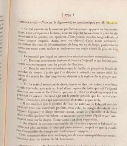 "Photographie — Note sur le daguerréotype panoramique; par M. Mertens. (pg 1799 only, the extent of the contribution).