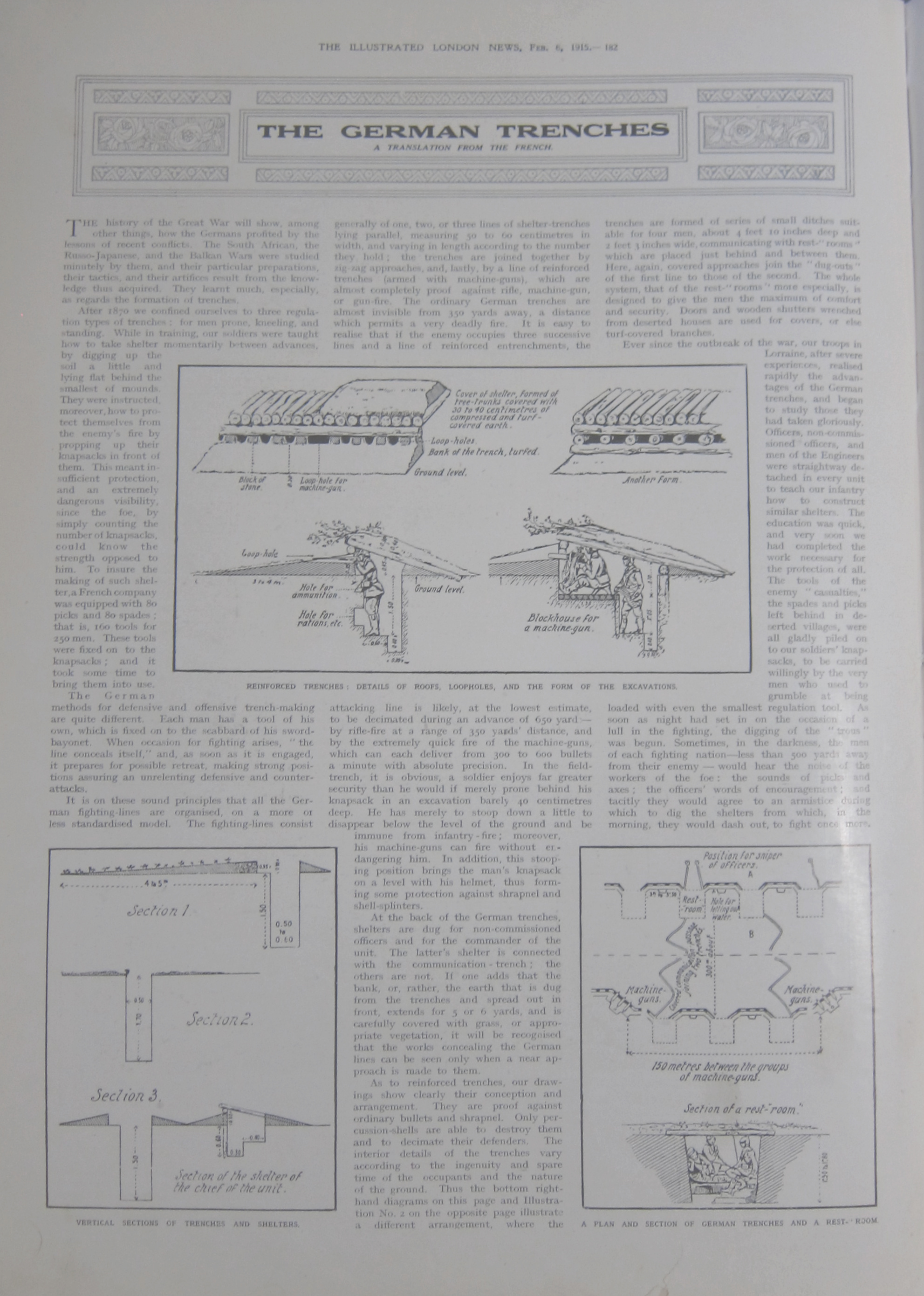 WWI was into its sixth (of fifty-one) months of war when these helpful graphics appeared in the pages of the Illustrated London News on Feb 6, 1915. Distinguishing trenches was interesting though not very essential, and certainly not as potentially useful to the broad population as the sheet identifying German aircraft. This image is a version of a poster that was distributed far and wide in Great Britain and France teaching ordinary citizens the differences between airplanes of friend and foe. There were a large number of designs of aircraft,especially so when you threw the British and French planes into the mix. It certainly would've been a bit involved at first to make these distinctions, though if your survival depended on perhaps knowing the differences in all of these aircraft then no doubt the learning curve would flatten out. It is also remarkable that all of these developments in aviation come just a dozen years after the Wright brothers first made their powered flight at Kill Devil Hills.