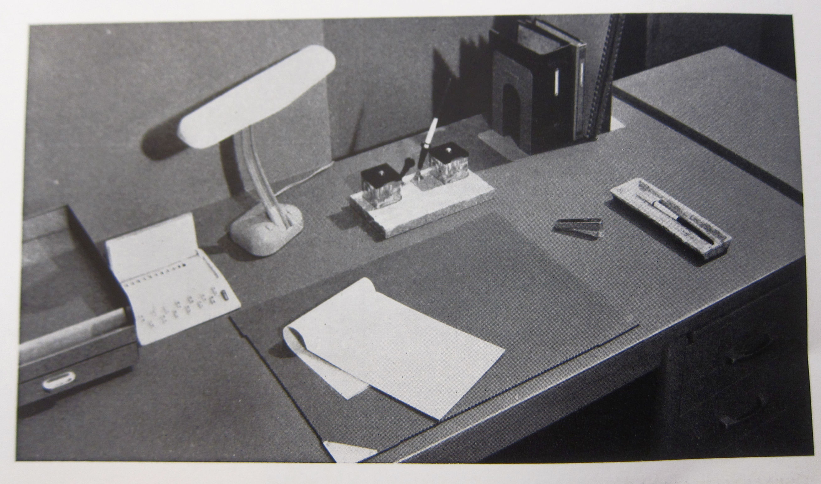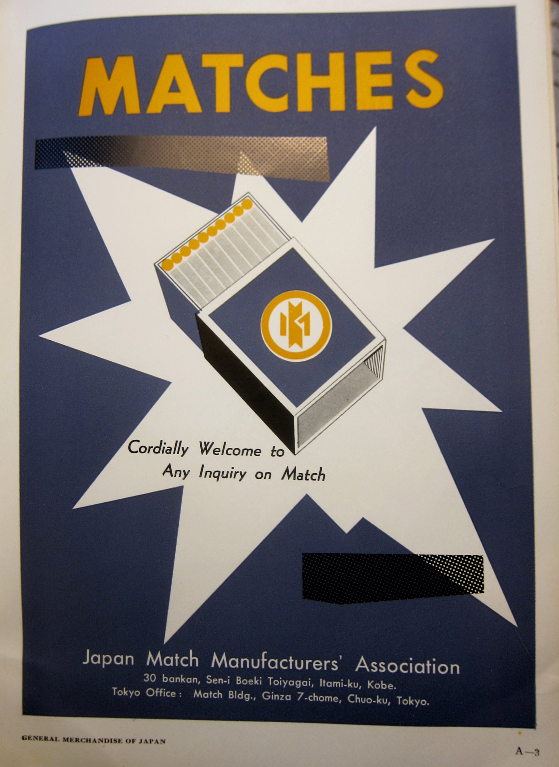 The Japan External Trade Recovery Organization's General Merchandise of Japan was an "effort is made to introduce every category of general merchandise" being made in the country in 1955. Ten years after the war the country was still of course recovering from its devastating defeat, though the national economy did make tremendous progress back to some sort of normalcy during that time, particularly during the 'fifties. This is not a Sears catalog, though, as it weighs in at 110 (thick) pages plus 30 pages of advertisements. The merchandise does spread out wide, if not very deep at all, and it makes for an interesting browse to see what sorts of goods were being manufactured and sold overseas so soon after the war. What caught my eye (following ads for tribal table art, "Japanese-style lanterns", cigarette lights, reed organs, toys, glasses, shoes, scissors, wooden bowls, eyeglasses (two varieties), and so on were the ads for pencils. There were at least four of them, three of which are visually striking. (And speaking of that, there's also a great ad for matches.) On the "Pencils of Japan" page there is also a peep into perfection, showing an office desktop outfitted with goods manufactured in Japan. There's not much, but the necessaries are there, and it is very tidy in a geo-Spartan way (and nothing like my own desk). In any event, I share the "Pencils of Japan":