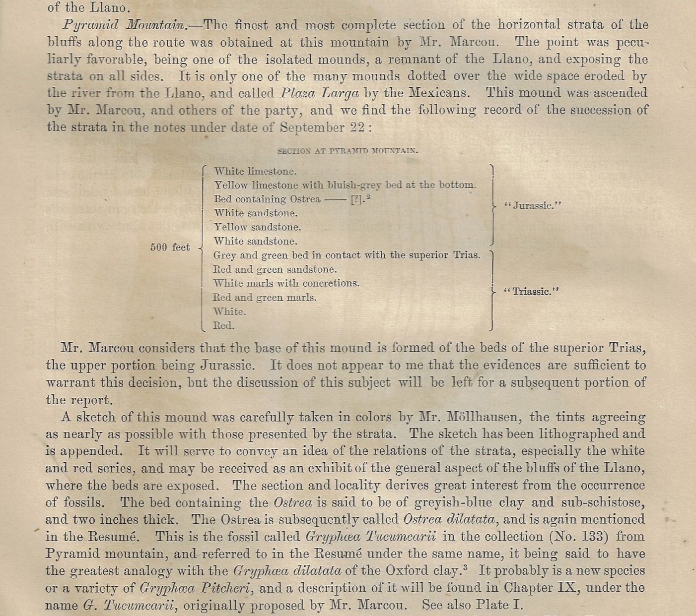 Well, this isn't technically "canonical", but it was close to the word "conical" that is in the title to this image, so I went with it. In any event what we are seeing here is classic exemplar of a large hill with exposed strata. The image appears in the Reports of Explorations and Surveys...to ascertain...the Route for a Railroad from the Mississippi River to the Pacific Ocean, a massive 13-volume work that is more commonly referred to as the USPRR. The chromolithograph appears in volume III of the work, and was published in 1856. The accompanying text explains the image.