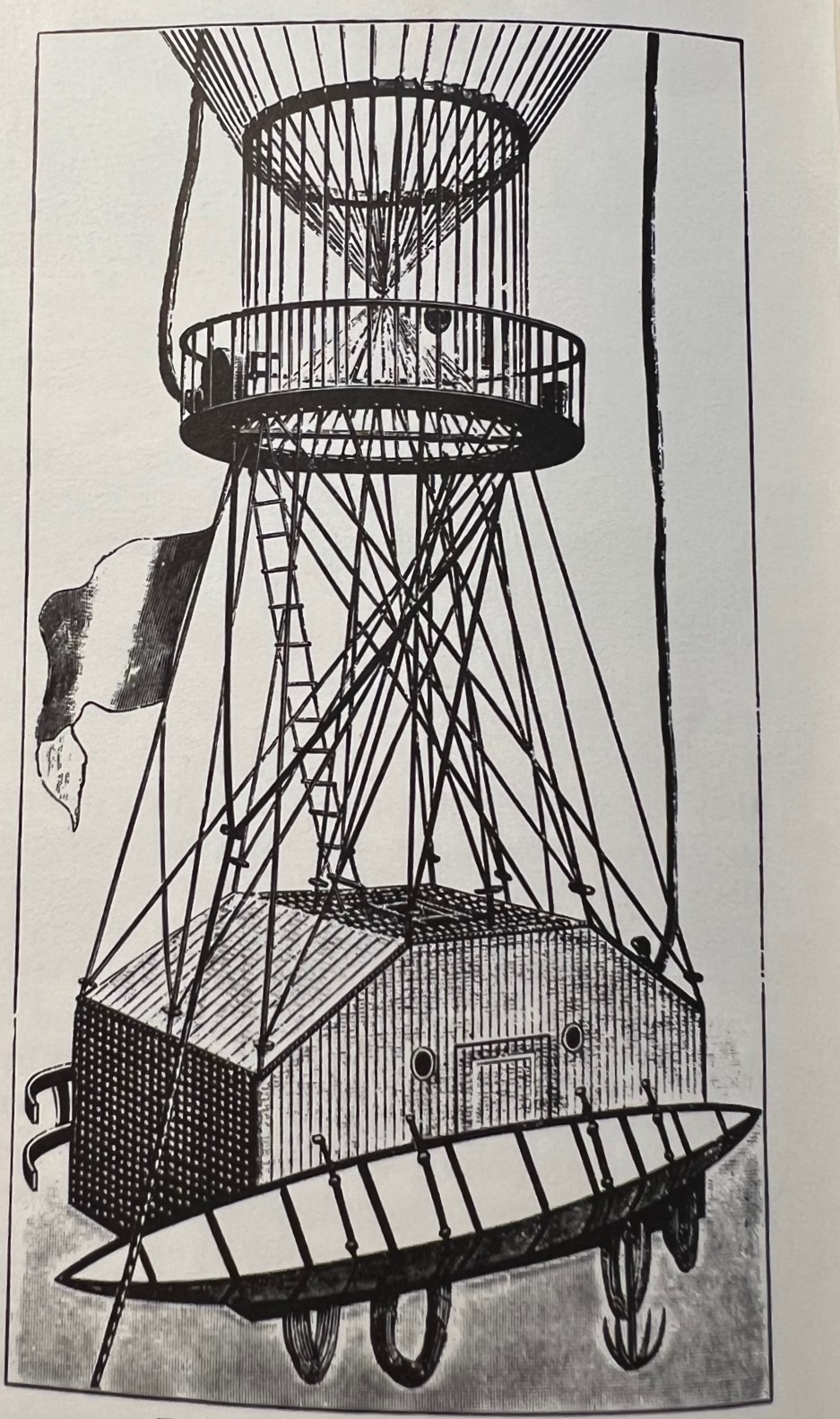 Answering the great North Call, to reach the North Pole, has been a quest for hundreds of explorers reaching back hundreds of years The image here depicts one iteration from 1890 of an attempt utilizing a 100' diameter balloon. The pilot adventurers here were Georges Besancon (1866-1934) Gustav Hermite (1863-1914), whose aims were to pilot the 17.5 ton aircraft (complete with a darkroom) to the Poleāand as you can see in the cutaway view of the balloon car, their's was an ambitious project. But their attempt to fly over the Pole was not to be, as they couldn't raise the funds to put it all together. They did however concentrate on atmospheric research using balloons and became leaders in that brand-new field, and were successful in establishing the use of balloon in this area. (The attainment of the North Pole came probably in 1909, generally regarding Robert Peary (b. 1852) reaching it in 1909...though Frederick Cook may have done so in 1908. And perhaps it was Matthew Henson, who may have stood at the coordinates before Peary. And so on. Two things seem to be certain in the uncertain list of "firsts" and the North Pole: the first over the Pole was probably Roald Amundsen in 1926, though Richard Byrd flew over the Pole in a Fokker-tri-motor at about the same time. It is a definite thing though that the first under the Pole was the USS Nautilus in 1958.