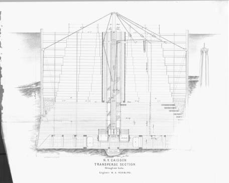 - [Image source: W.A. Roebling, Pneumatic Tower Foundations of the East River Suspension, [the caissons of the Brooklyn Bridge] New York, Averell & Peckett, 1873. The full text is available from Lehigh University http://cdm.lib.lehigh.edu/cdm/ref/collection/bridges/id/1406]